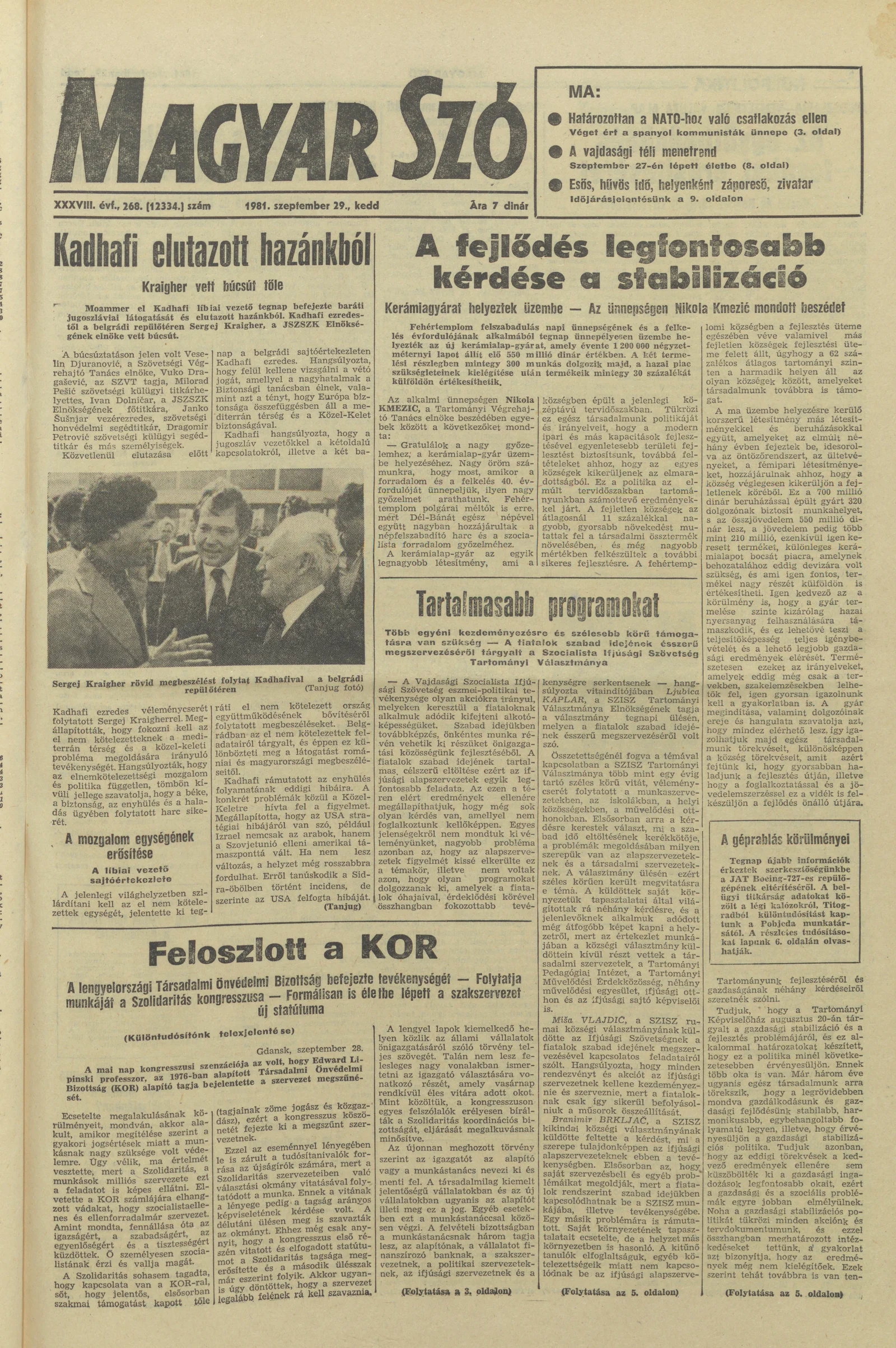 Magyar Szó, 38. évf. 1981. szeptember 29. 268. sz.
