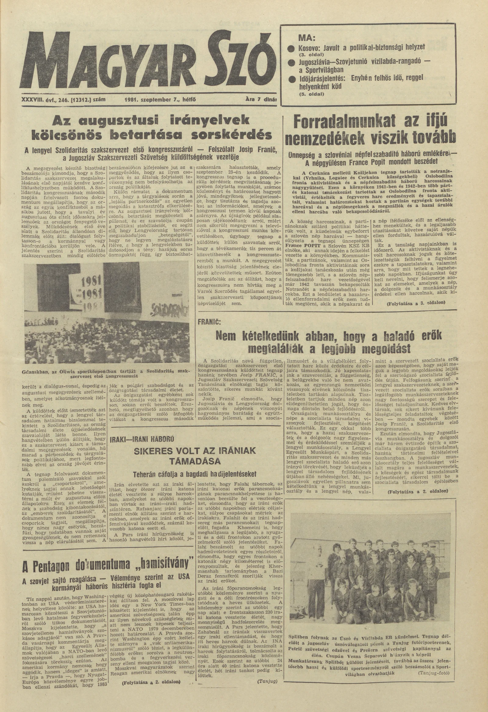 Magyar Szó, 38. évf. 1981. szeptember 7. 246. sz.