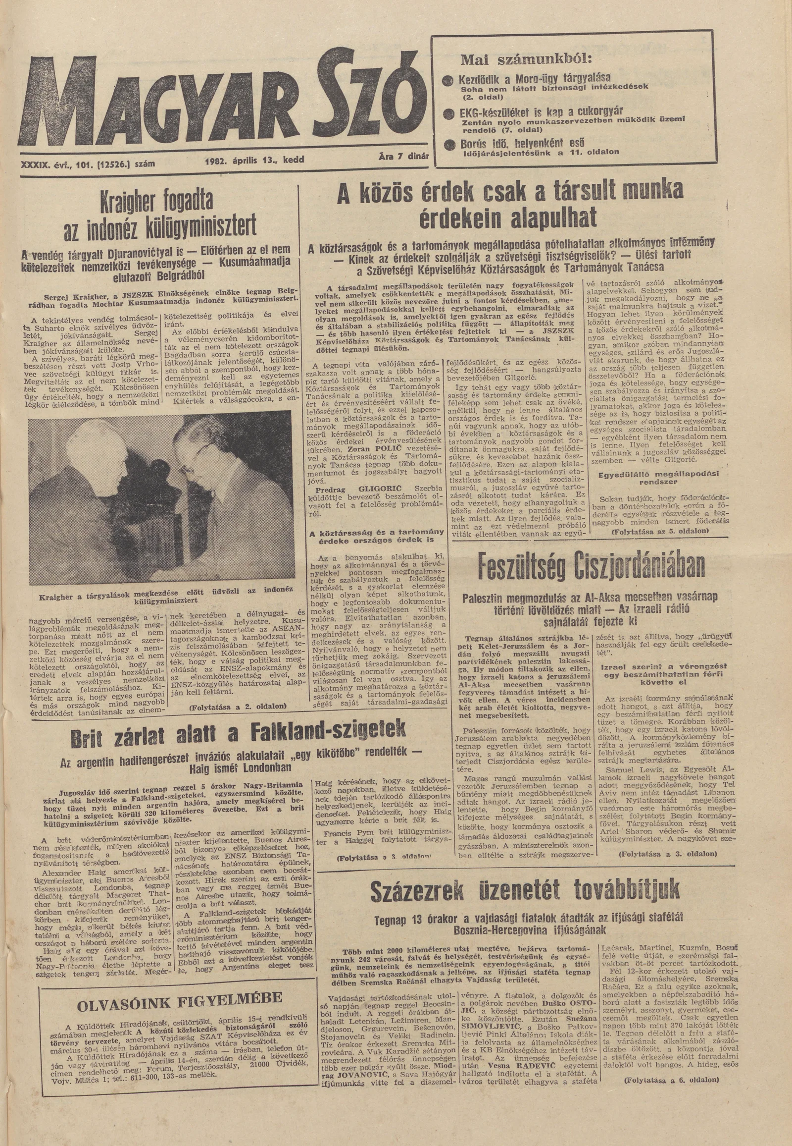 Magyar Szó, 39. évf. 1982. április 13. 101. sz. 1–20. oldal