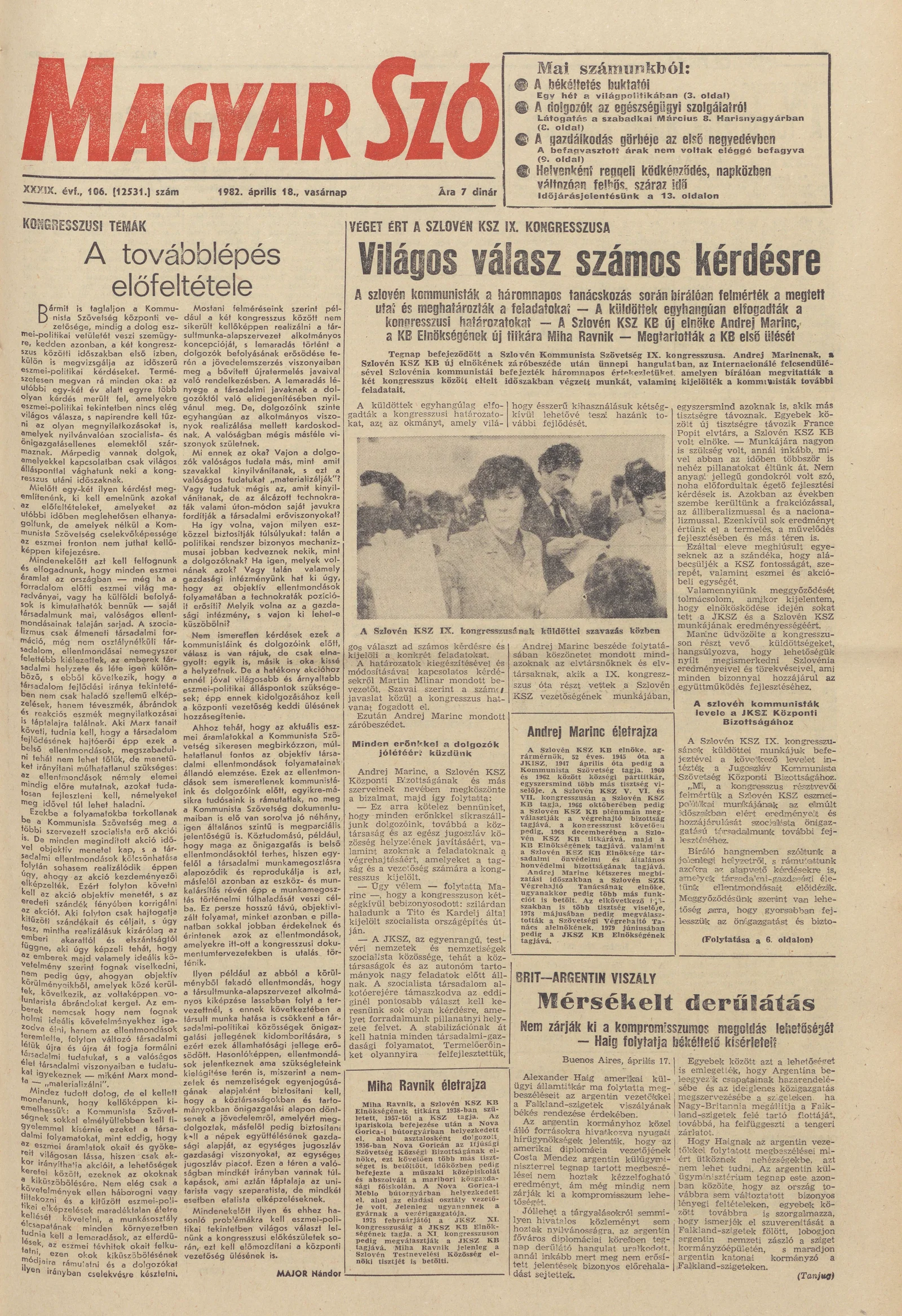 Magyar Szó, 39. évf. 1982. április 18. 106. sz. 1–28. oldal