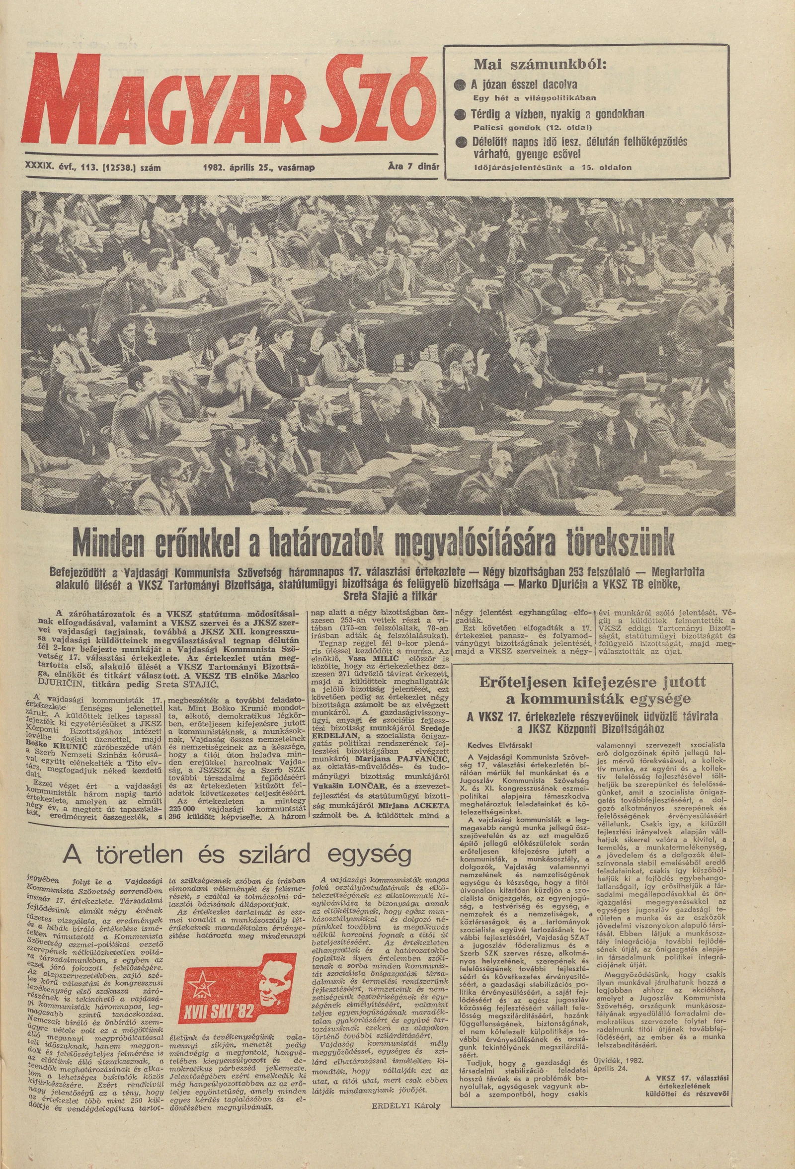 Magyar Szó, 39. évf. 1982. április 25. 113. sz. 1–32. oldal
