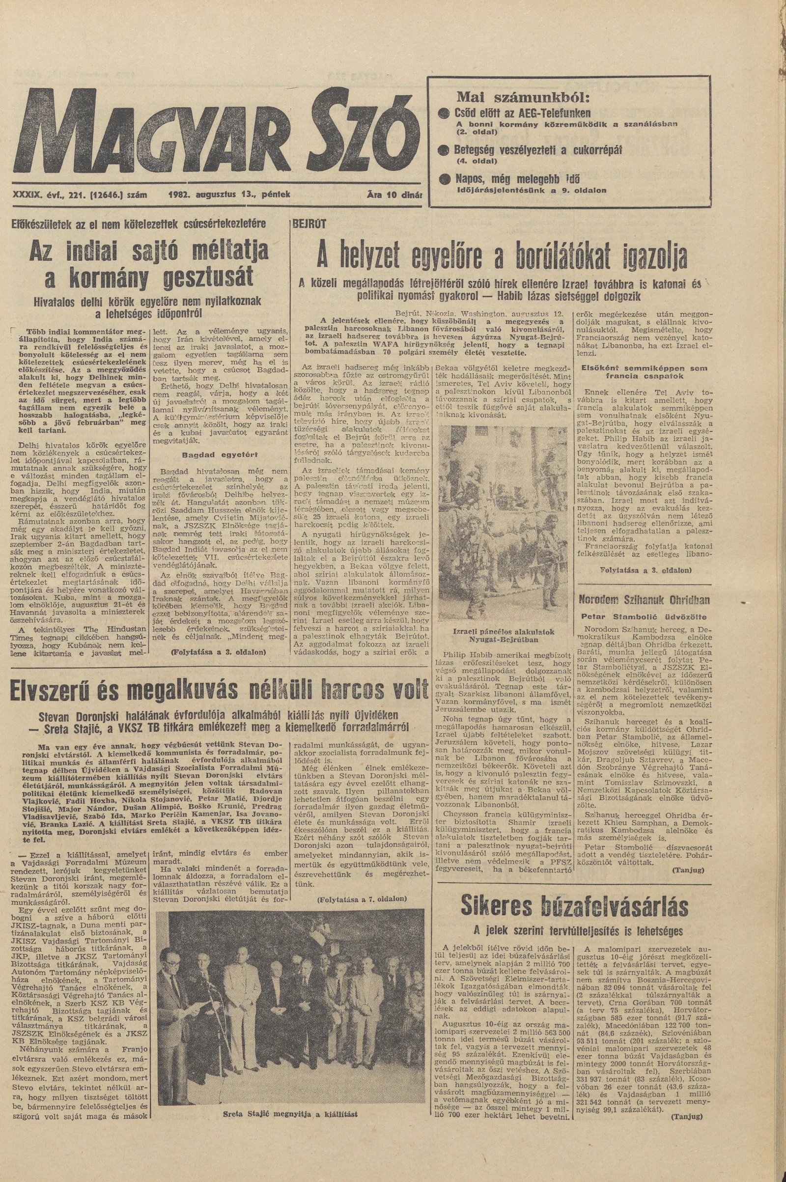 Magyar Szó, 39. évf. 1982. augusztus 13. 221. sz. 1–20. oldal