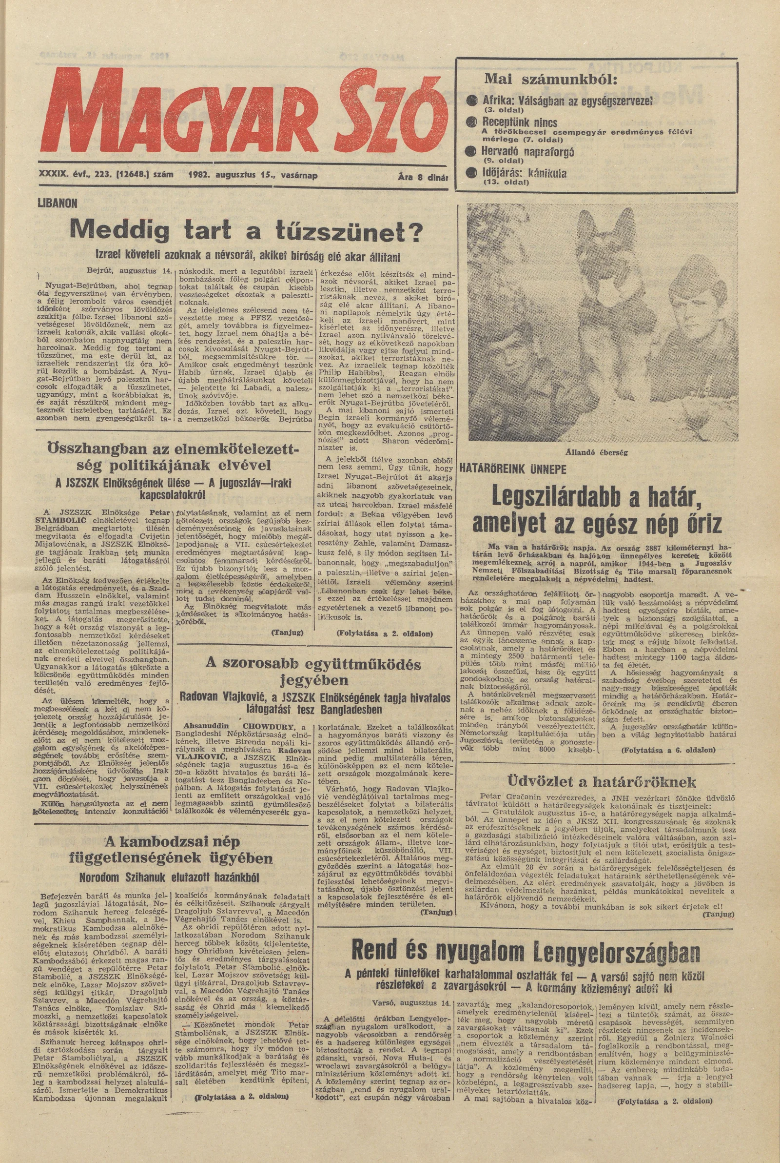 Magyar Szó, 39. évf. 1982. augusztus 15. 223. sz. 1–28. oldal