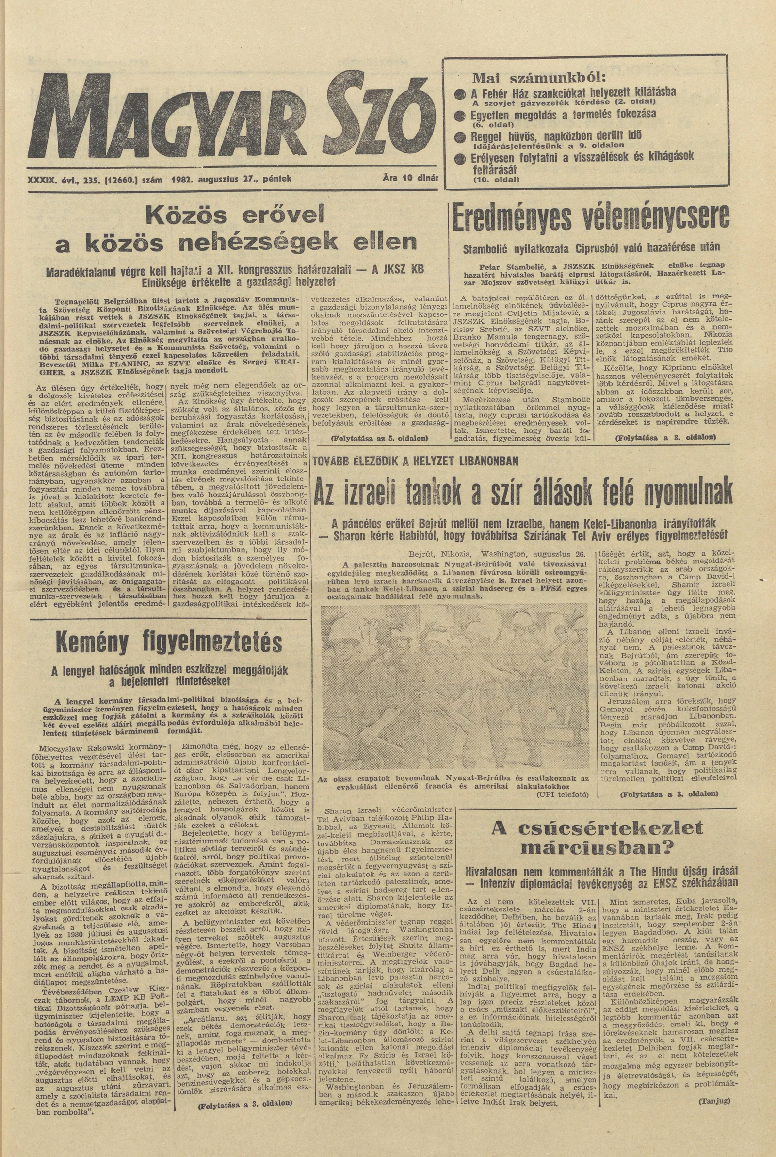 Magyar Szó, 39. évf. 1982. augusztus 27. 235. sz. 1–20. oldal
