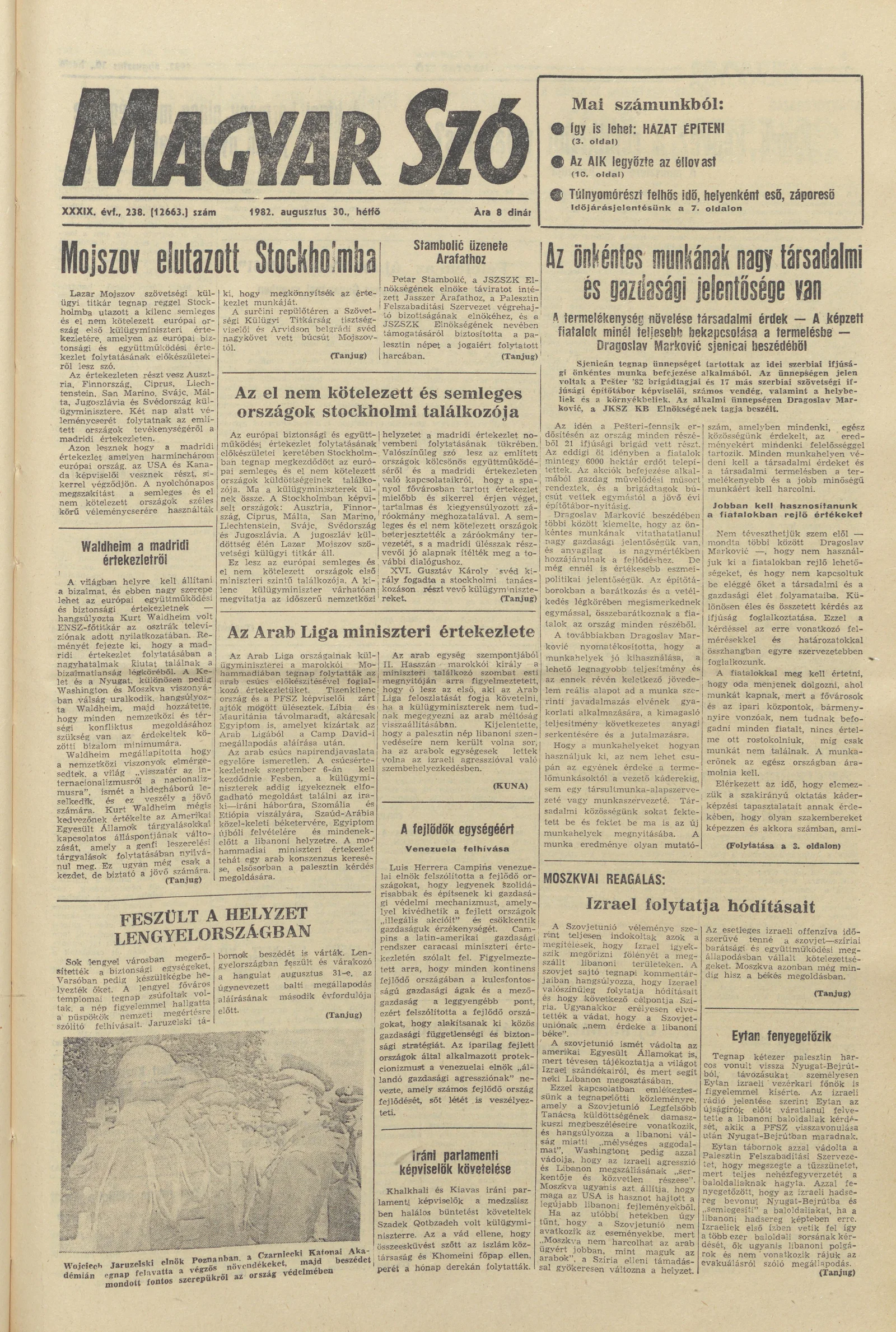 Magyar Szó, 39. évf. 1982. augusztus 30. 238. sz. 1–8. oldal