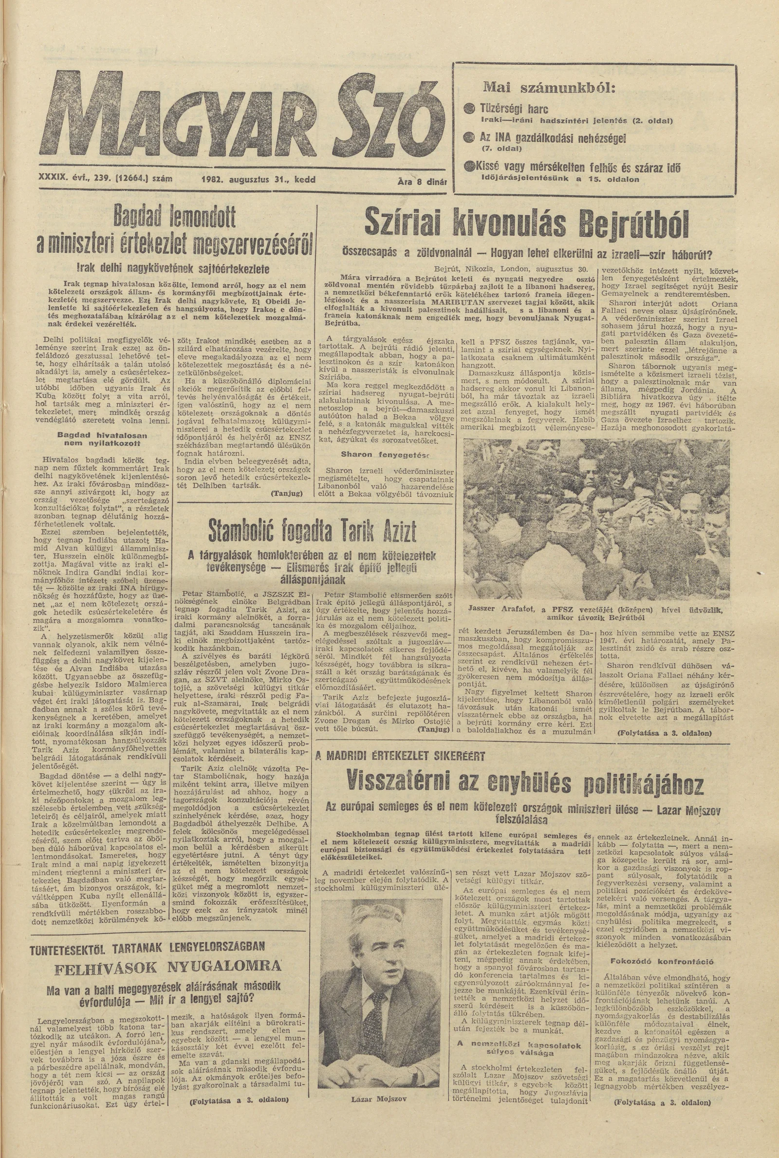 Magyar Szó, 39. évf. 1982. augusztus 31. 239. sz. 1–20. oldal