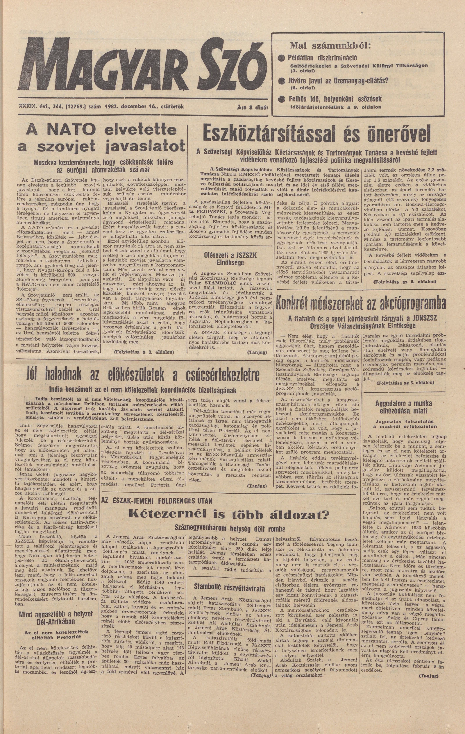 Magyar Szó, 39. évf. 1982. december 16. 344. sz. 1–24. oldal