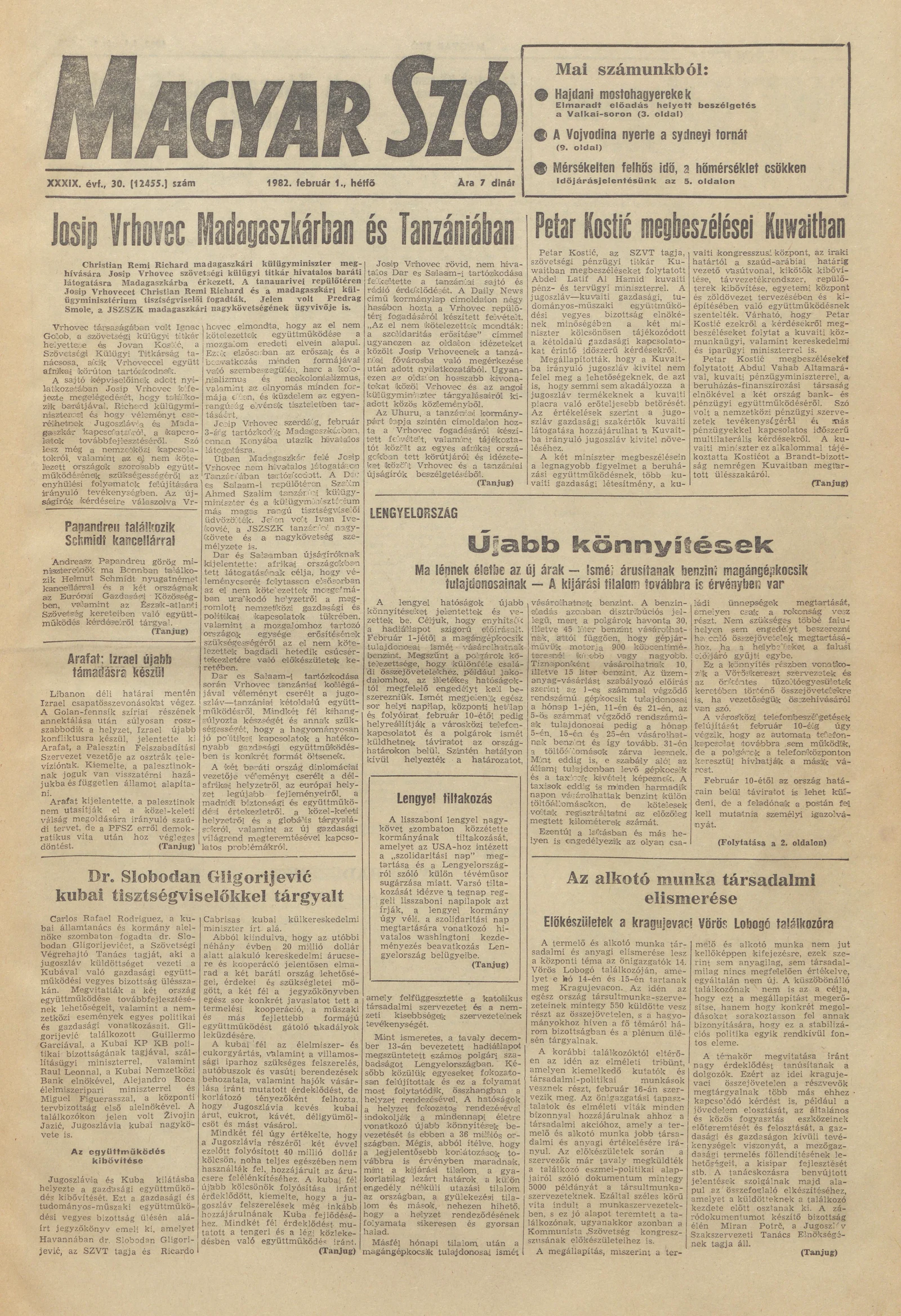 Magyar Szó, 39. évf. 1982. február 1. 30. sz. 1–8. oldal