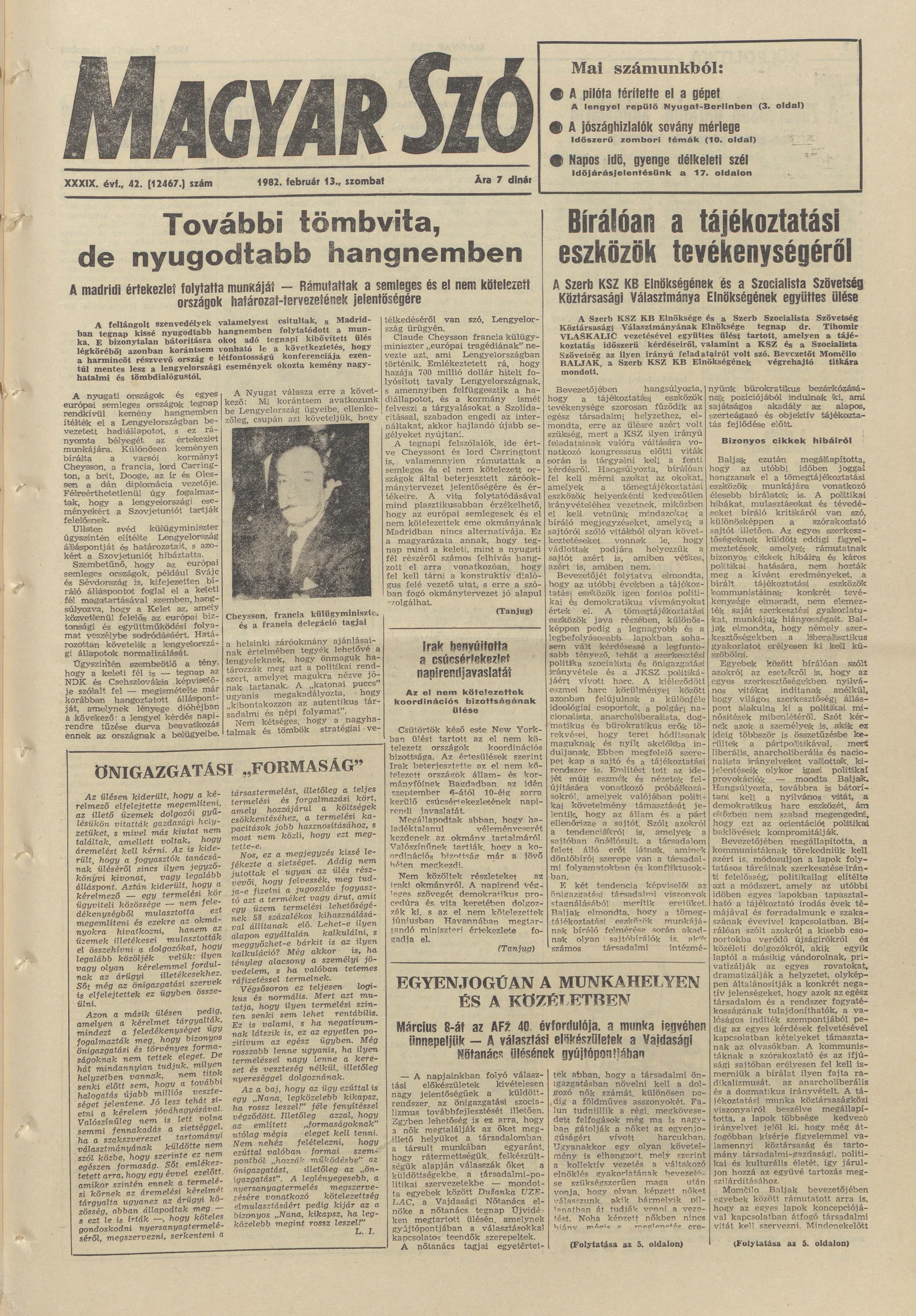 Magyar Szó, 39. évf. 1982. február 13. 42. sz. 1–20. oldal