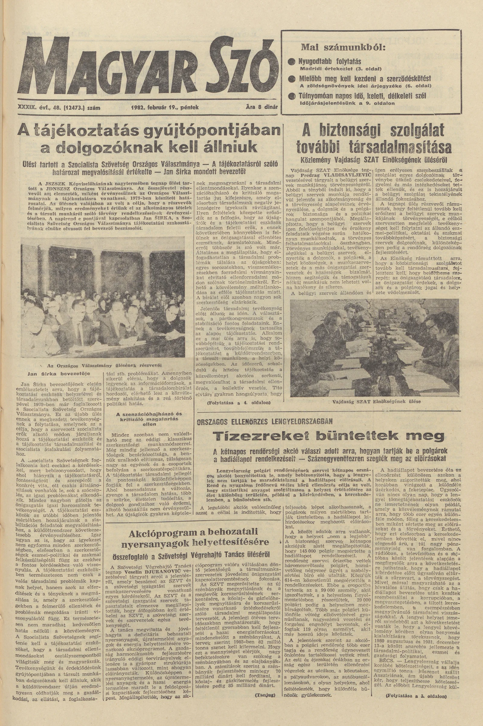 Magyar Szó, 39. évf. 1982. február 19. 48. sz. 1–20. oldal
