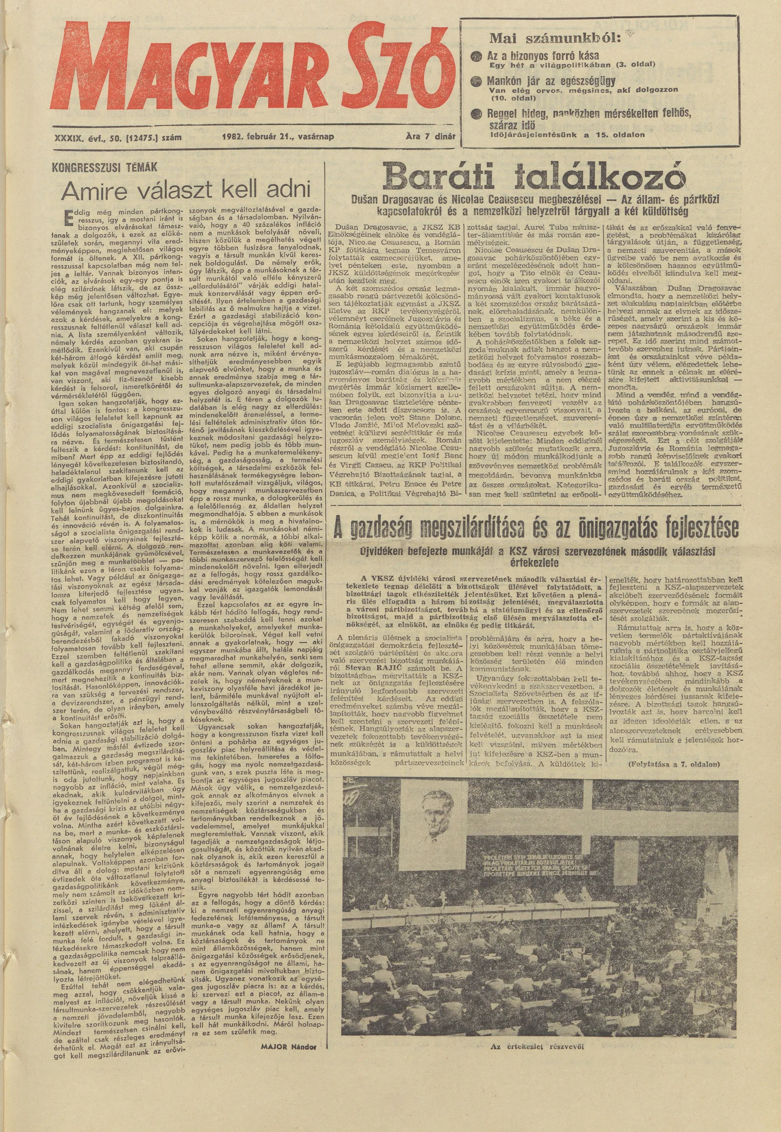 Magyar Szó, 39. évf. 1982. február 21. 50. sz. 1–28. oldal