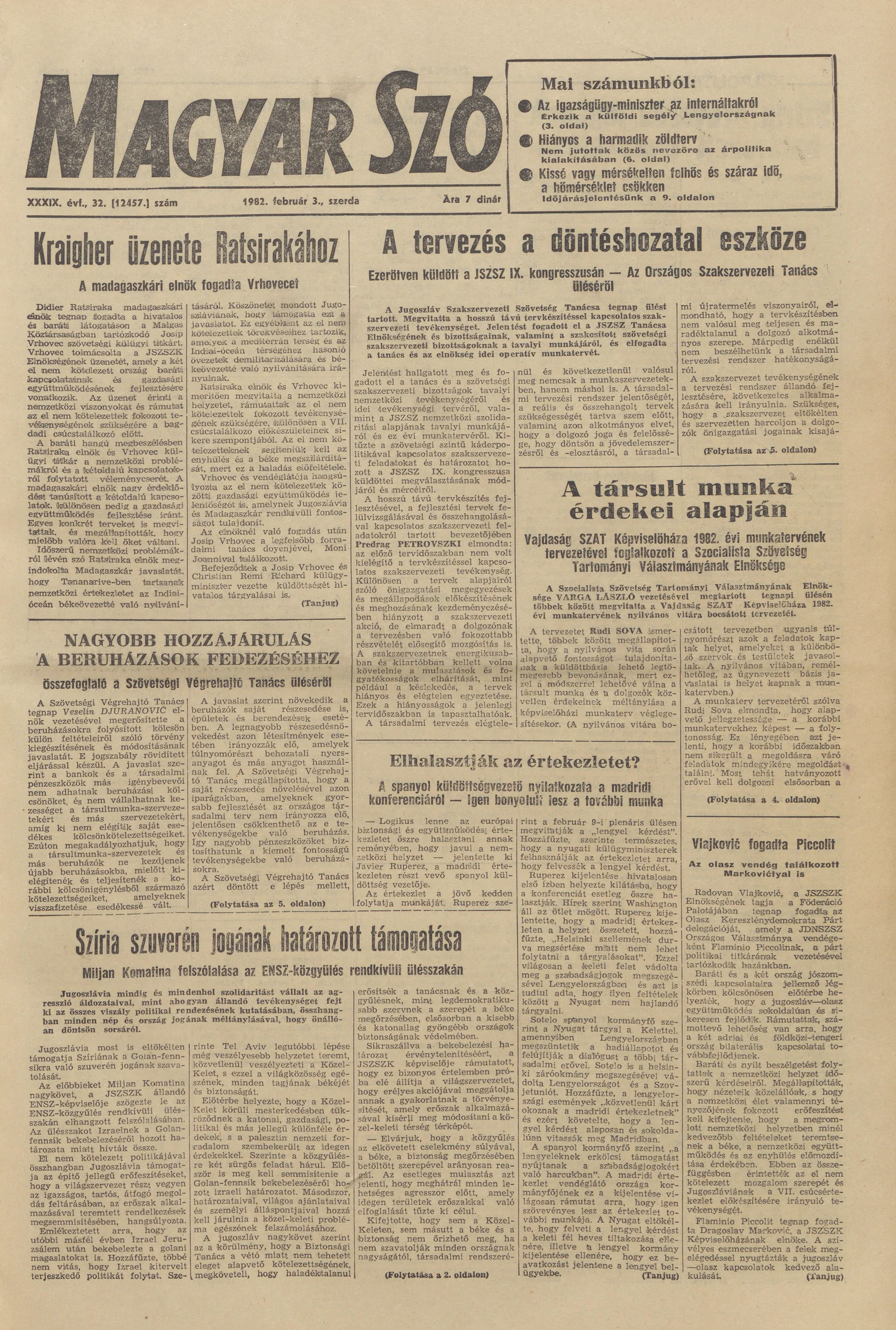 Magyar Szó, 39. évf. 1982. február 3. 32. sz. 1–20. oldal