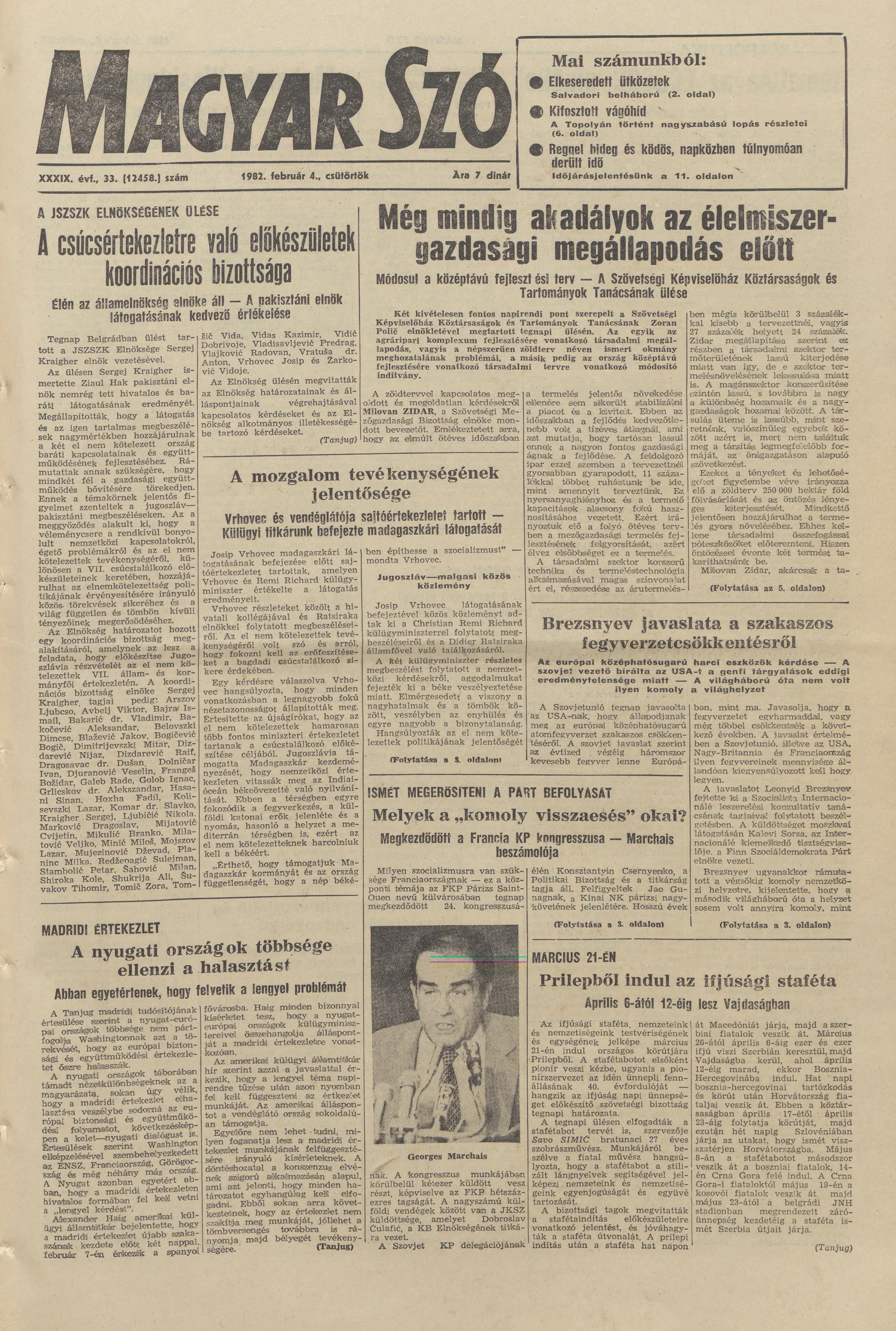 Magyar Szó, 39. évf. 1982. február 4. 33. sz. 1–20. oldal