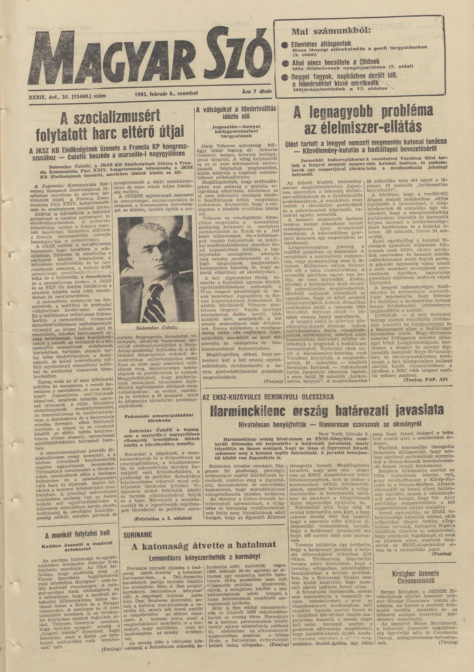 Magyar Szó, 39. évf. 1982. február 6. 35. sz. 1–20. oldal