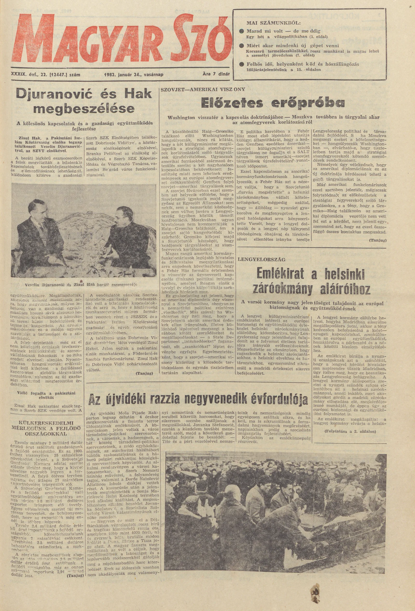 Magyar Szó, 39. évf. 1982. január 24. 22. sz. 1–28. oldal