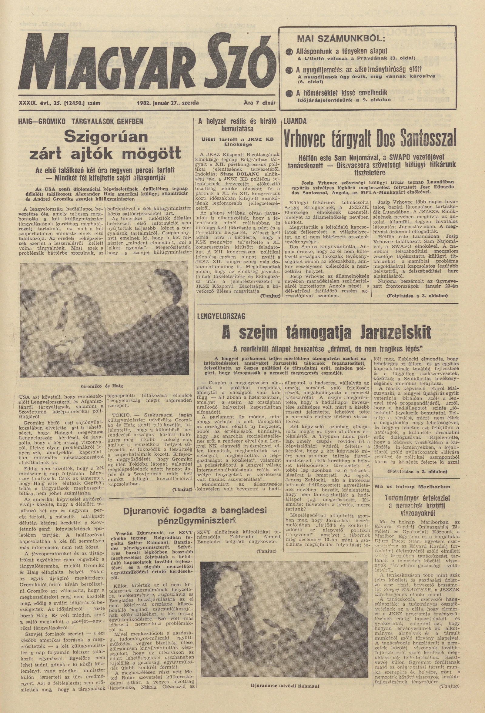 Magyar Szó, 39. évf. 1982. január 27. 25. sz. 1–20. oldal