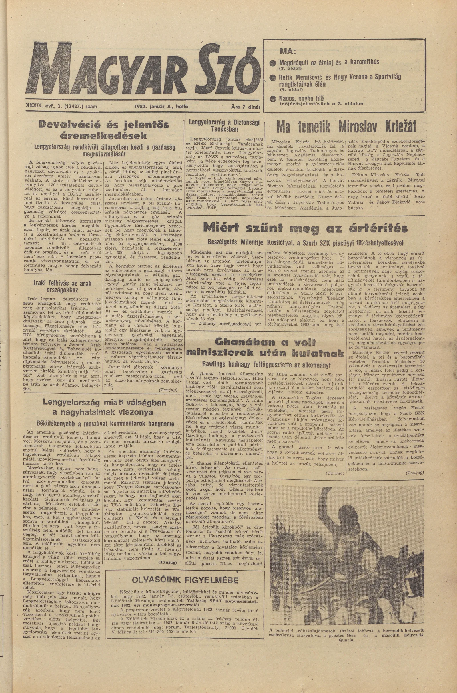 Magyar Szó, 39. évf. 1982. január 4. 2. sz. 1–8. oldal
