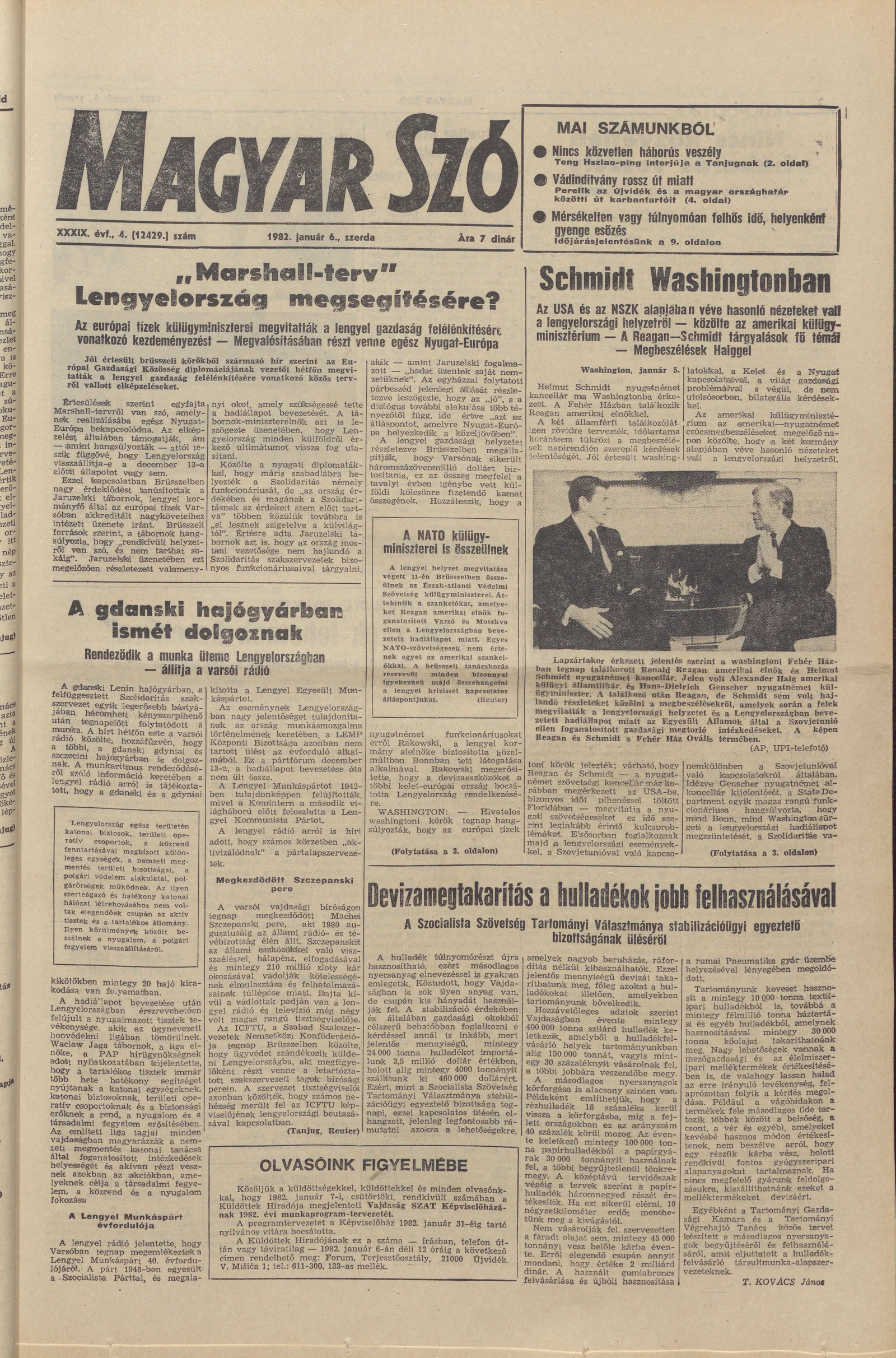 Magyar Szó, 39. évf. 1982. január 6. 4. sz. 1–20. oldal