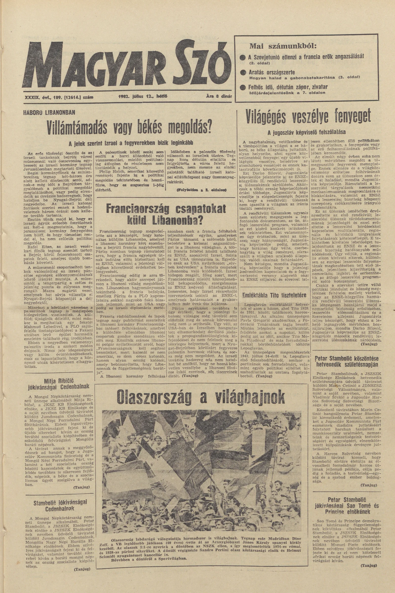Magyar Szó, 39. évf. 1982. július 12. 189. sz. 1–8. oldal
