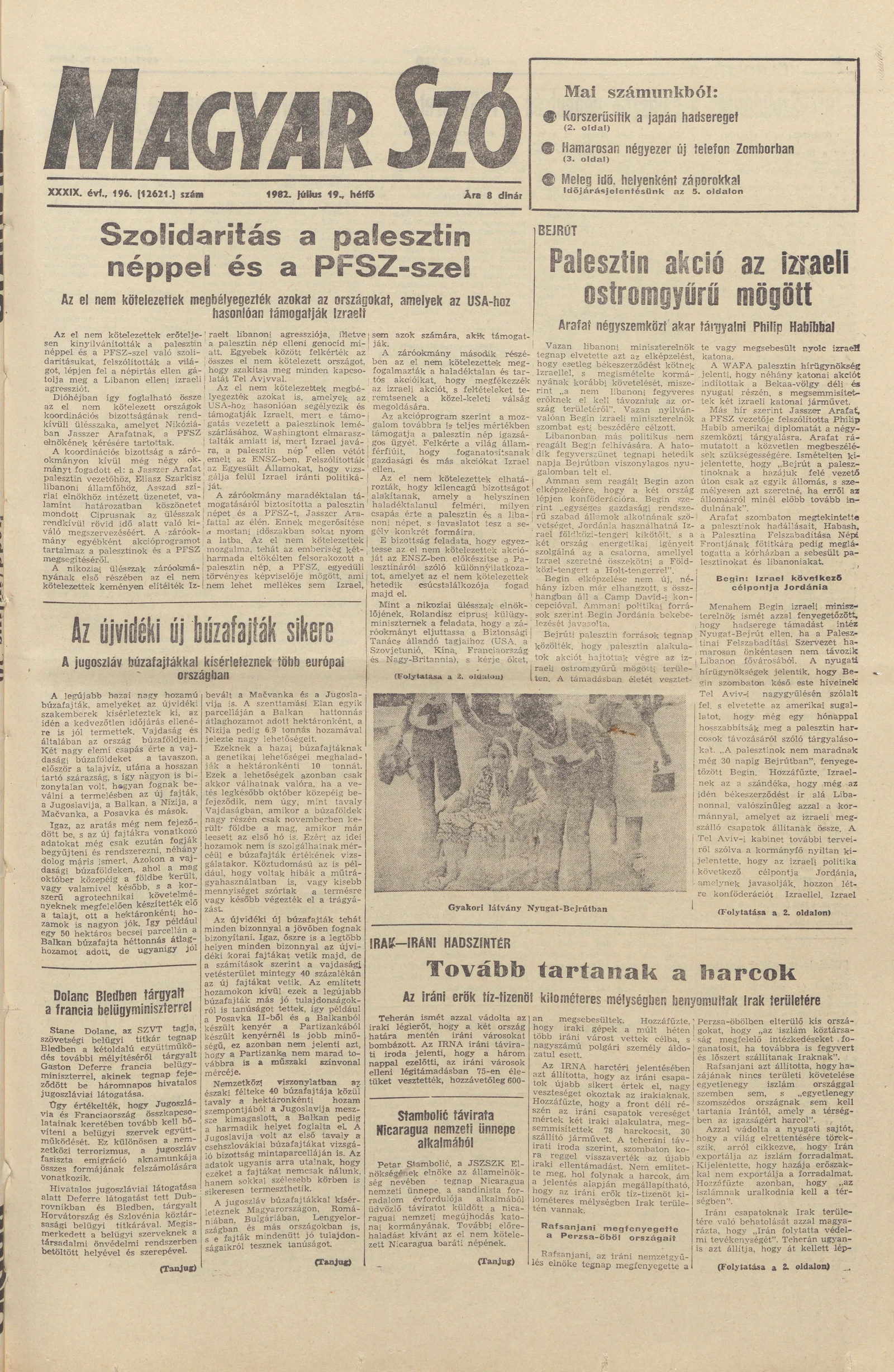 Magyar Szó, 39. évf. 1982. július 19. 196. sz. 1–8. oldal