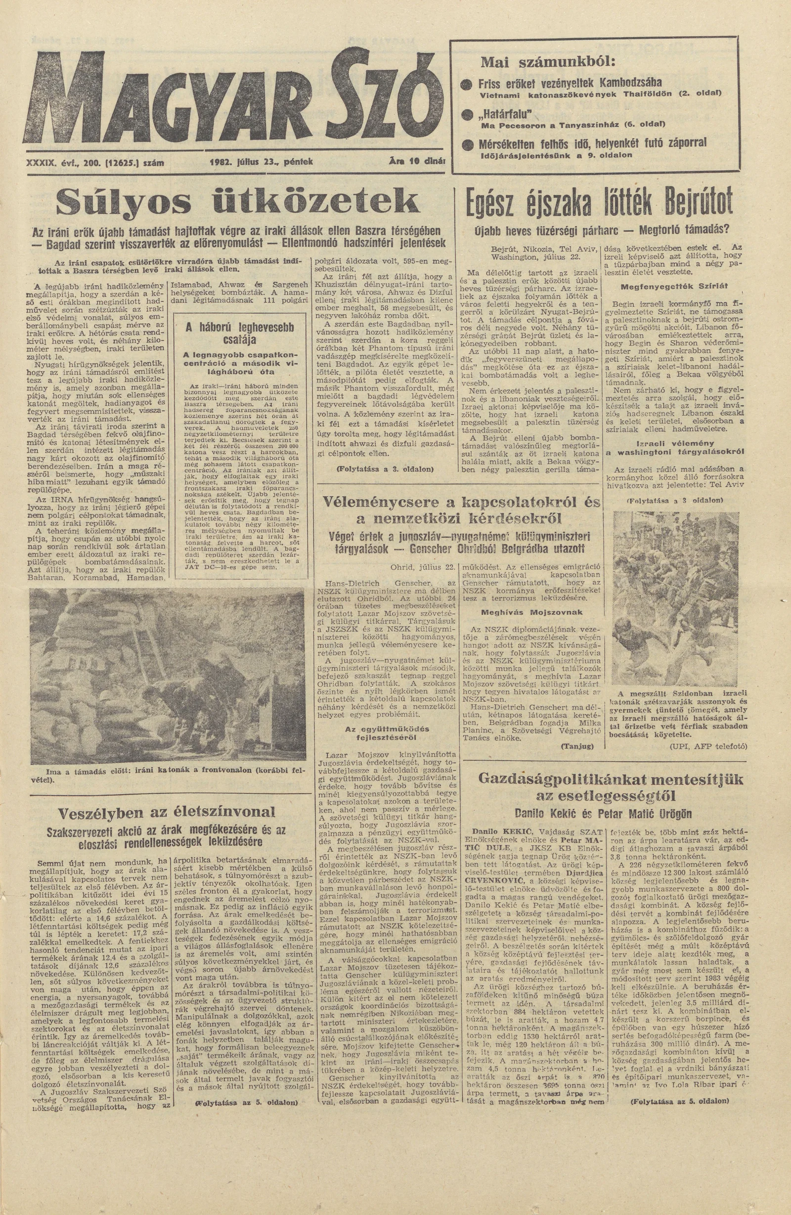 Magyar Szó, 39. évf. 1982. július 23. 200. sz. 1–20. oldal