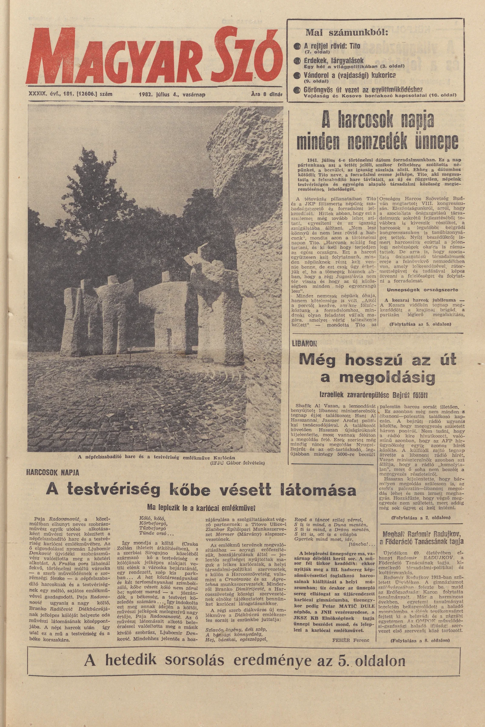 Magyar Szó, 39. évf. 1982. július 4. 181. sz. 1–32. oldal