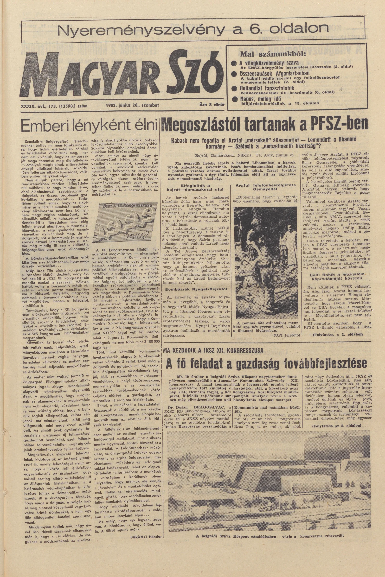 Magyar Szó, 39. évf. 1982. június 26. 173. sz. 1–20. oldal