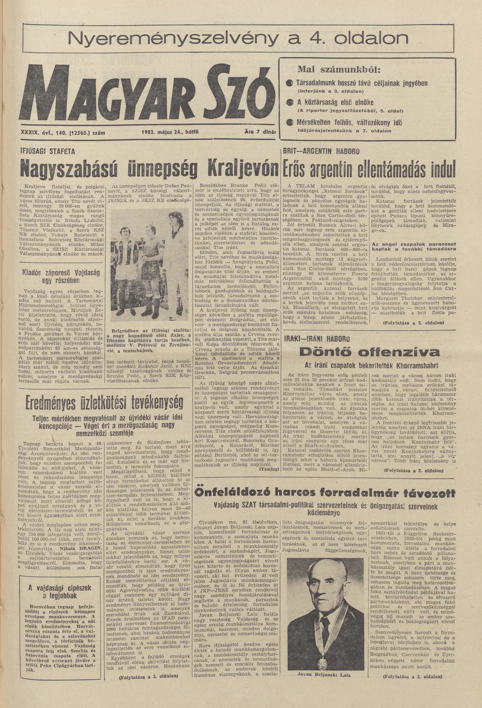 Magyar Szó, 39. évf. 1982. május 24. 140. sz. 1–8. oldal