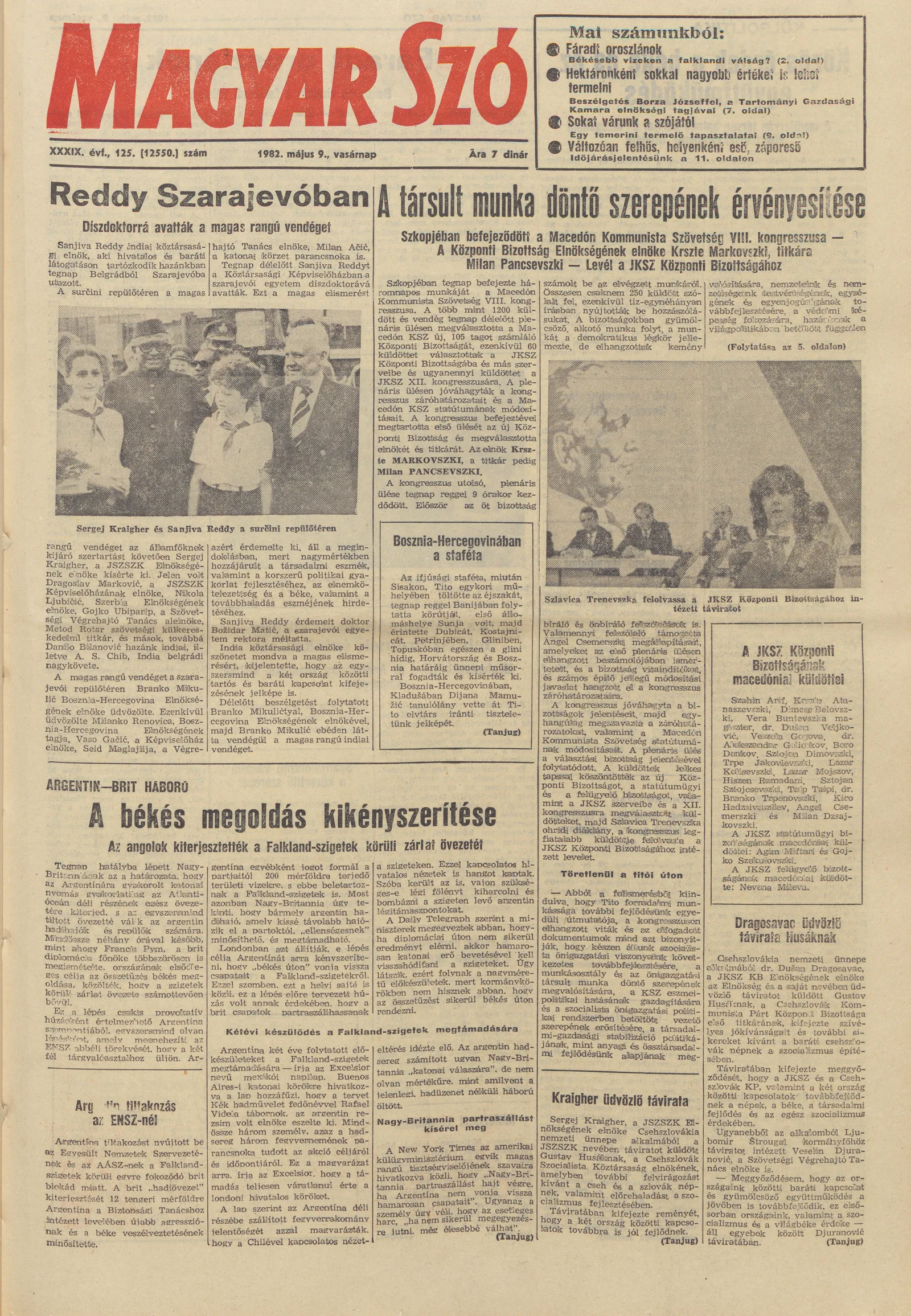 Magyar Szó, 39. évf. 1982. május 9. 125. sz. 1–32. oldal