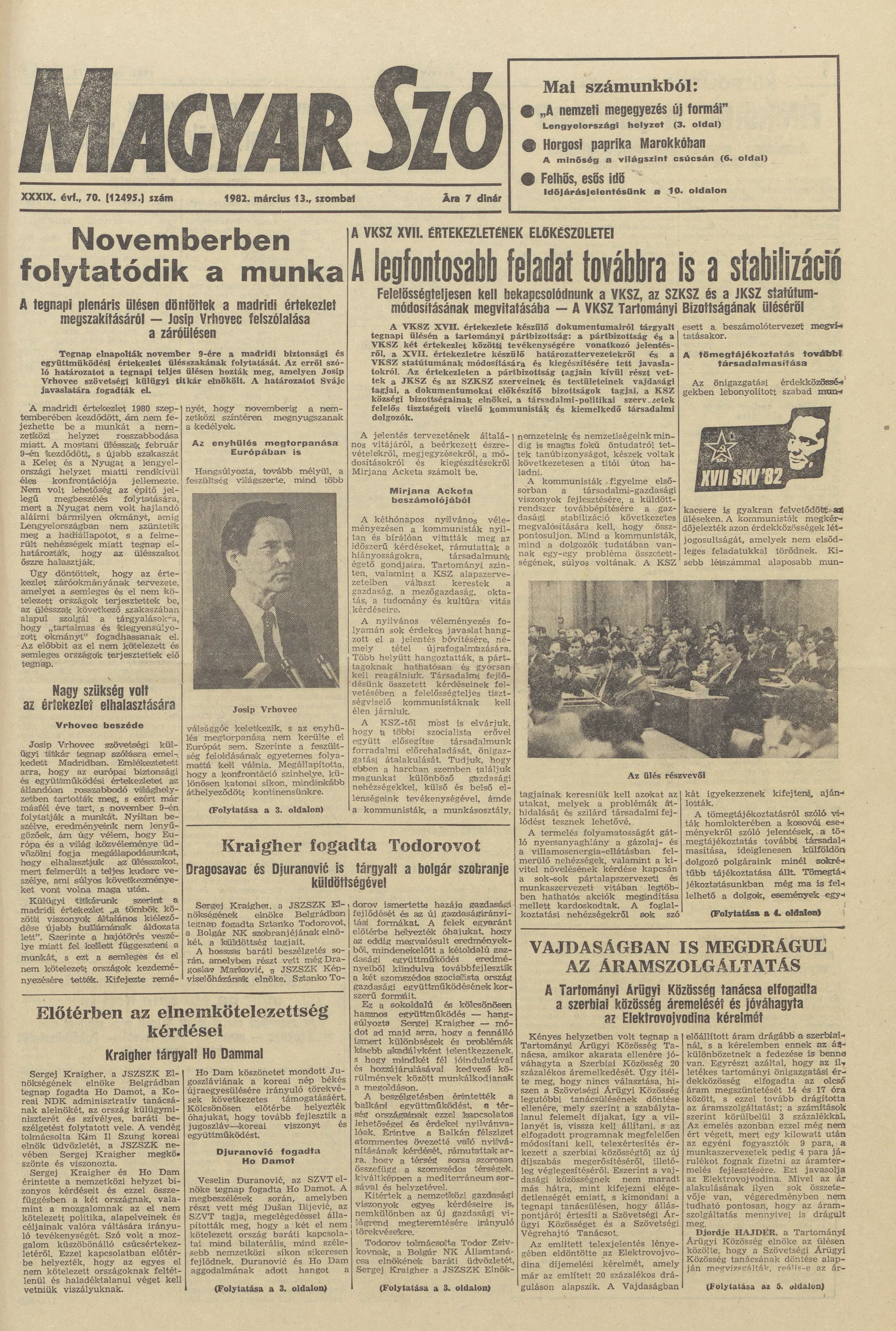 Magyar Szó, 39. évf. 1982. március 13. 70. sz. 1–20. oldal