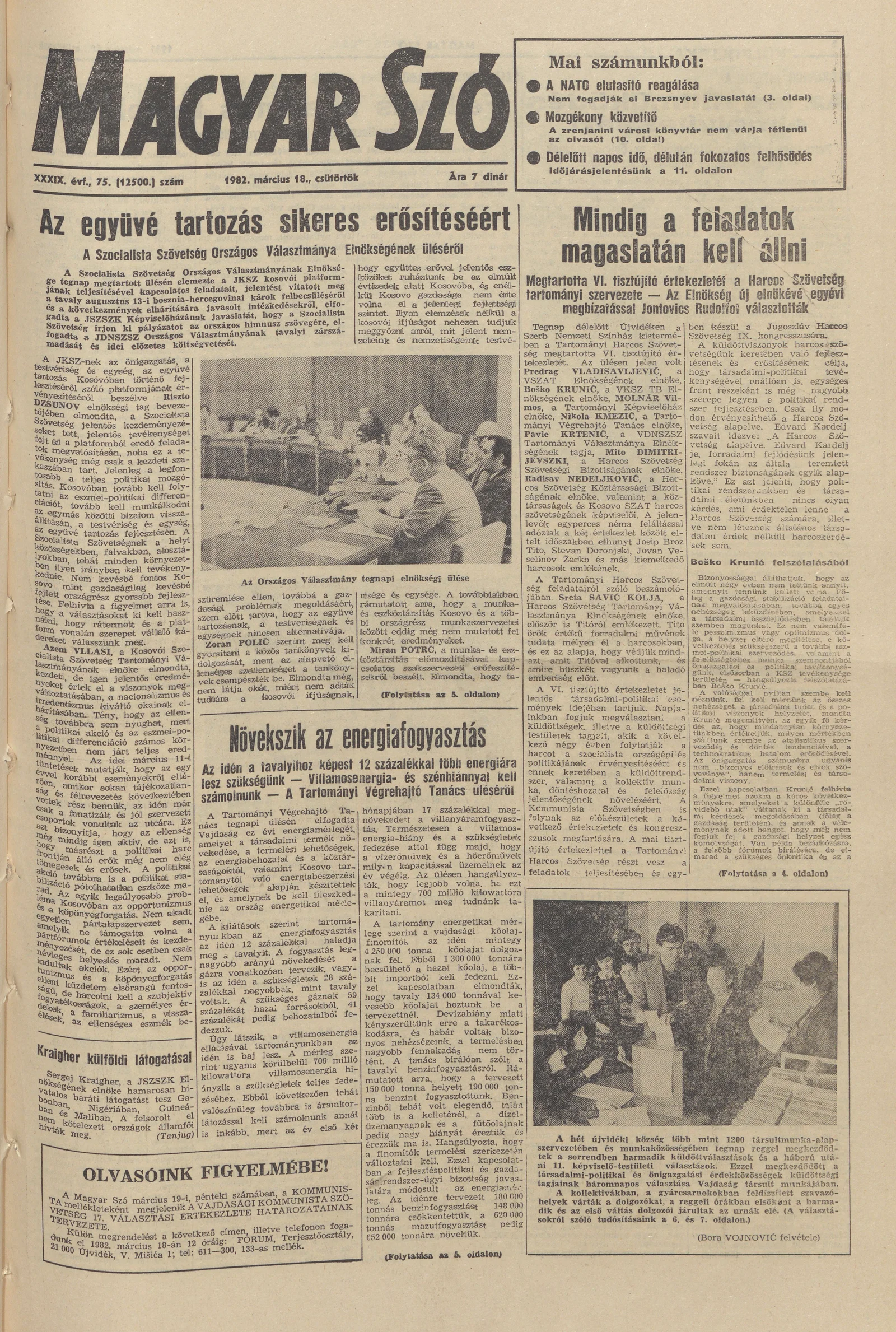 Magyar Szó, 39. évf. 1982. március 18. 75. sz. 1–20. oldal