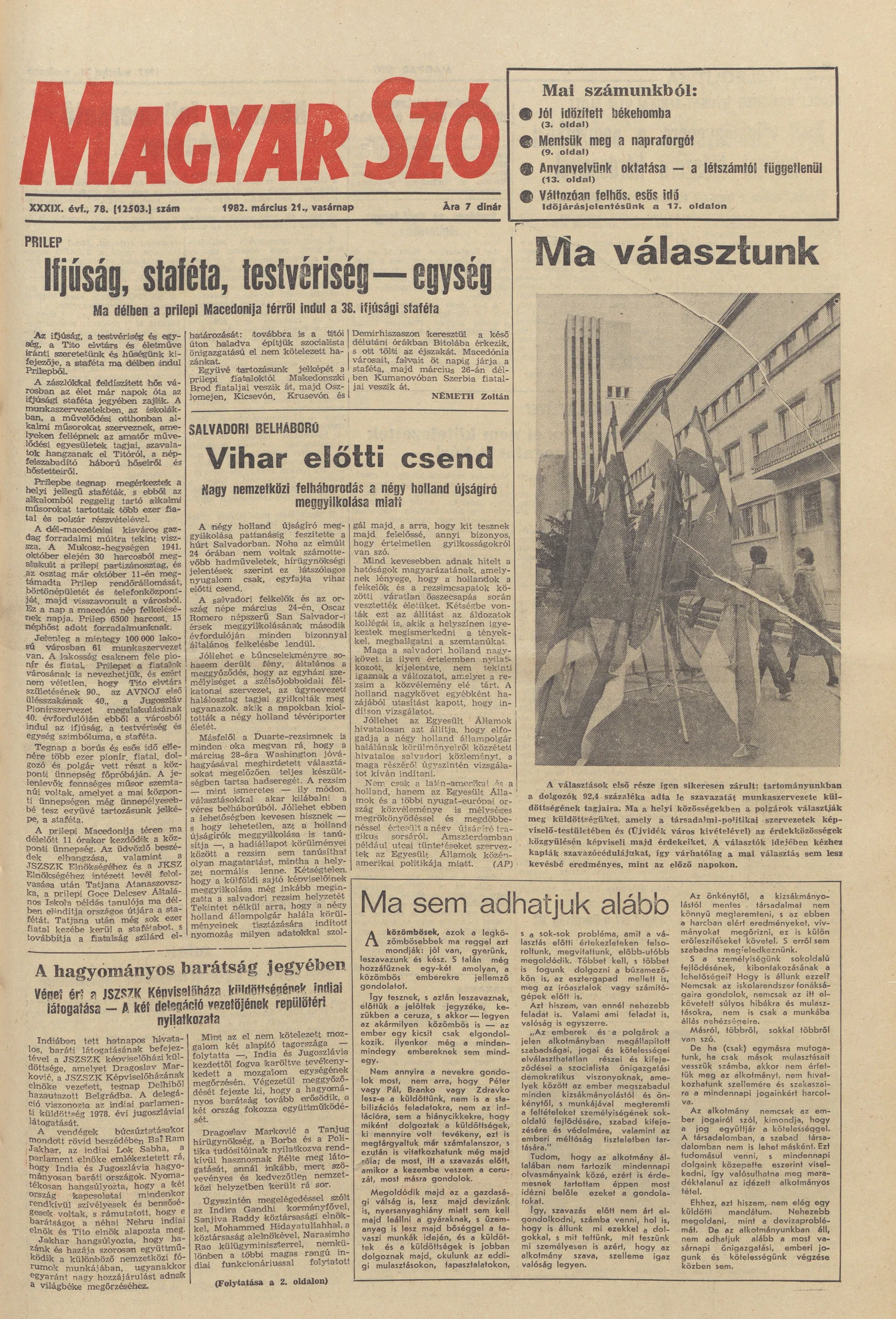 Magyar Szó, 39. évf. 1982. március 21. 78. sz. 1–32. oldal