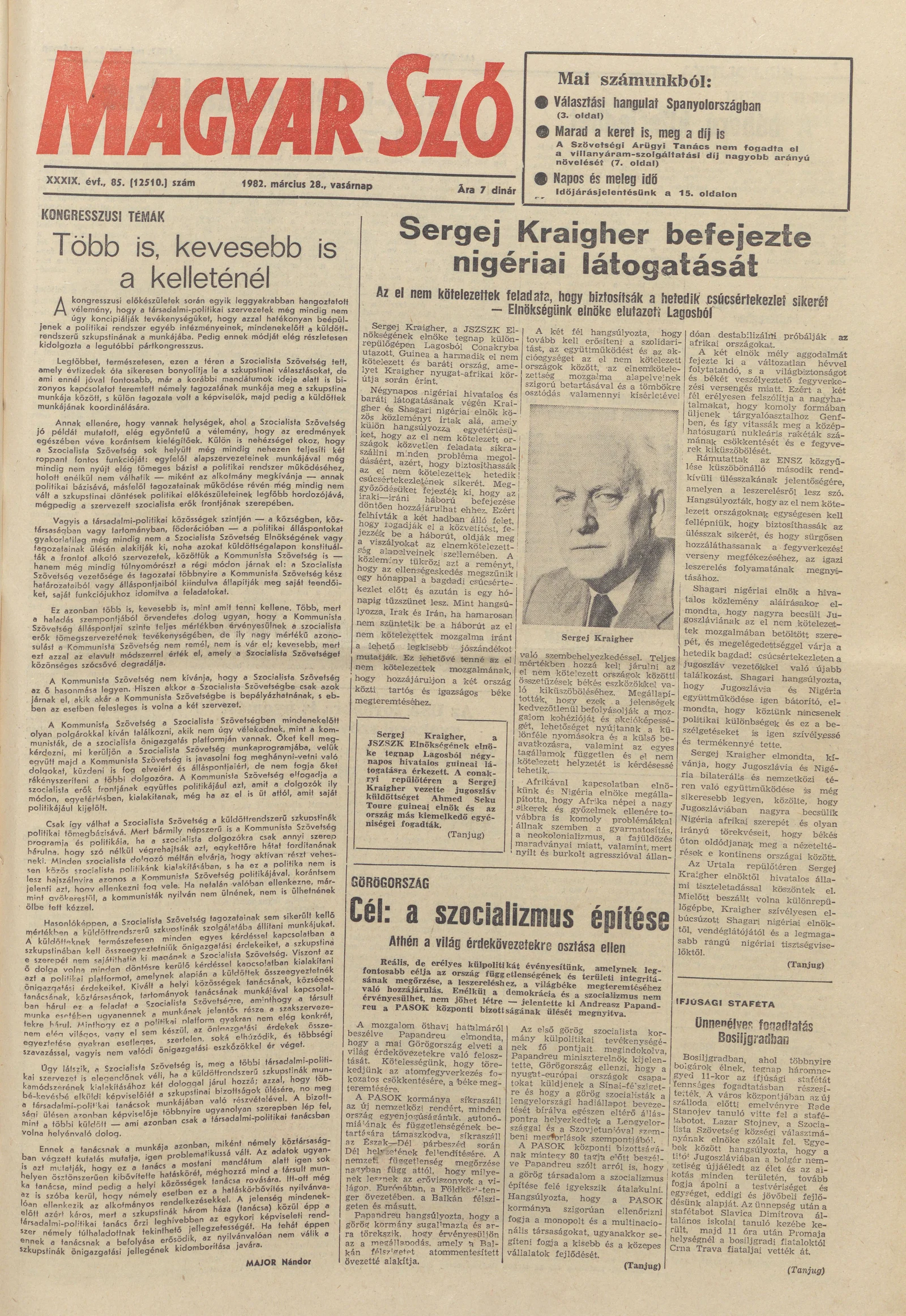 Magyar Szó, 39. évf. 1982. március 28. 85. sz. 1–28. oldal