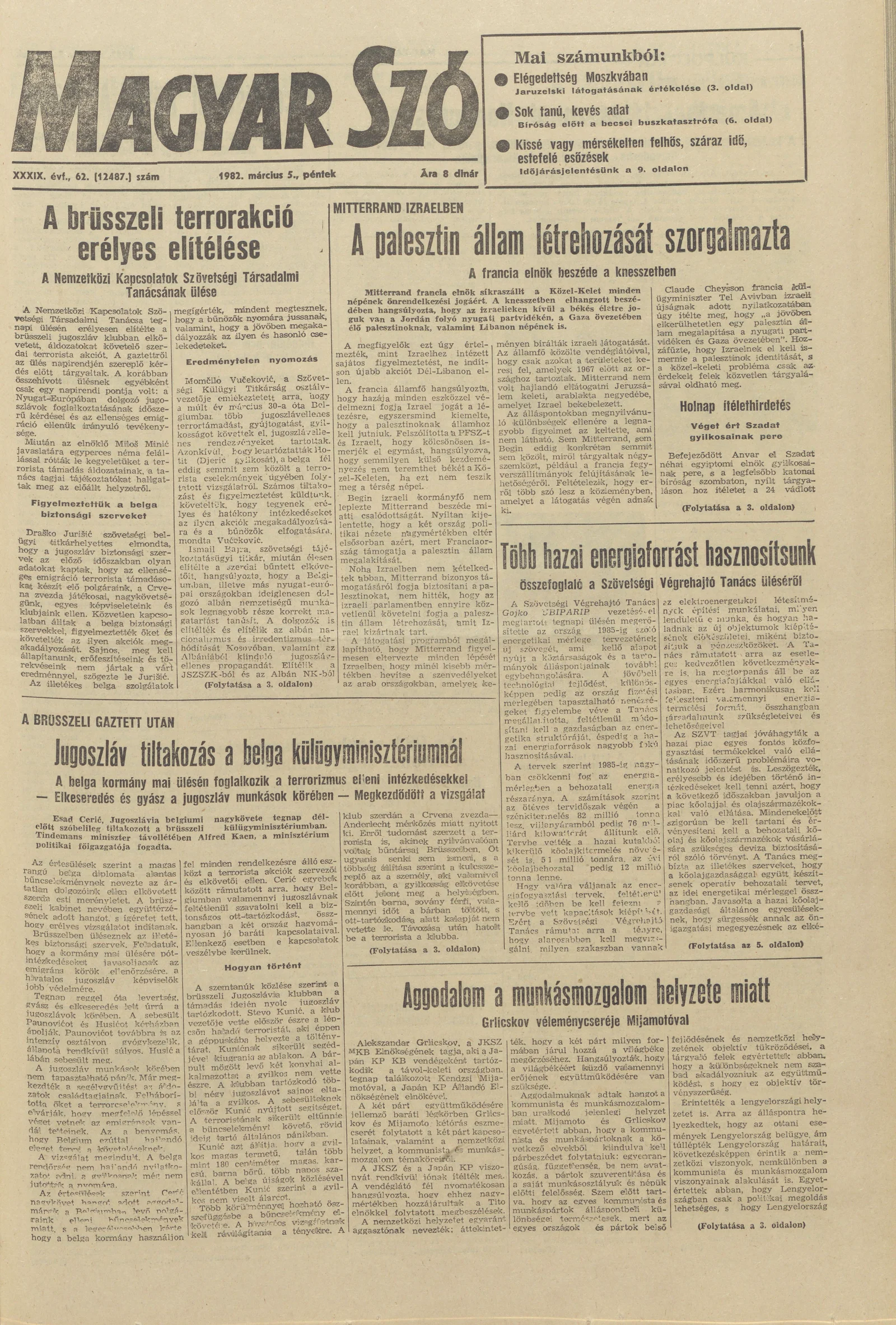 Magyar Szó, 39. évf. 1982. március 5. 62. sz. 1–20. oldal