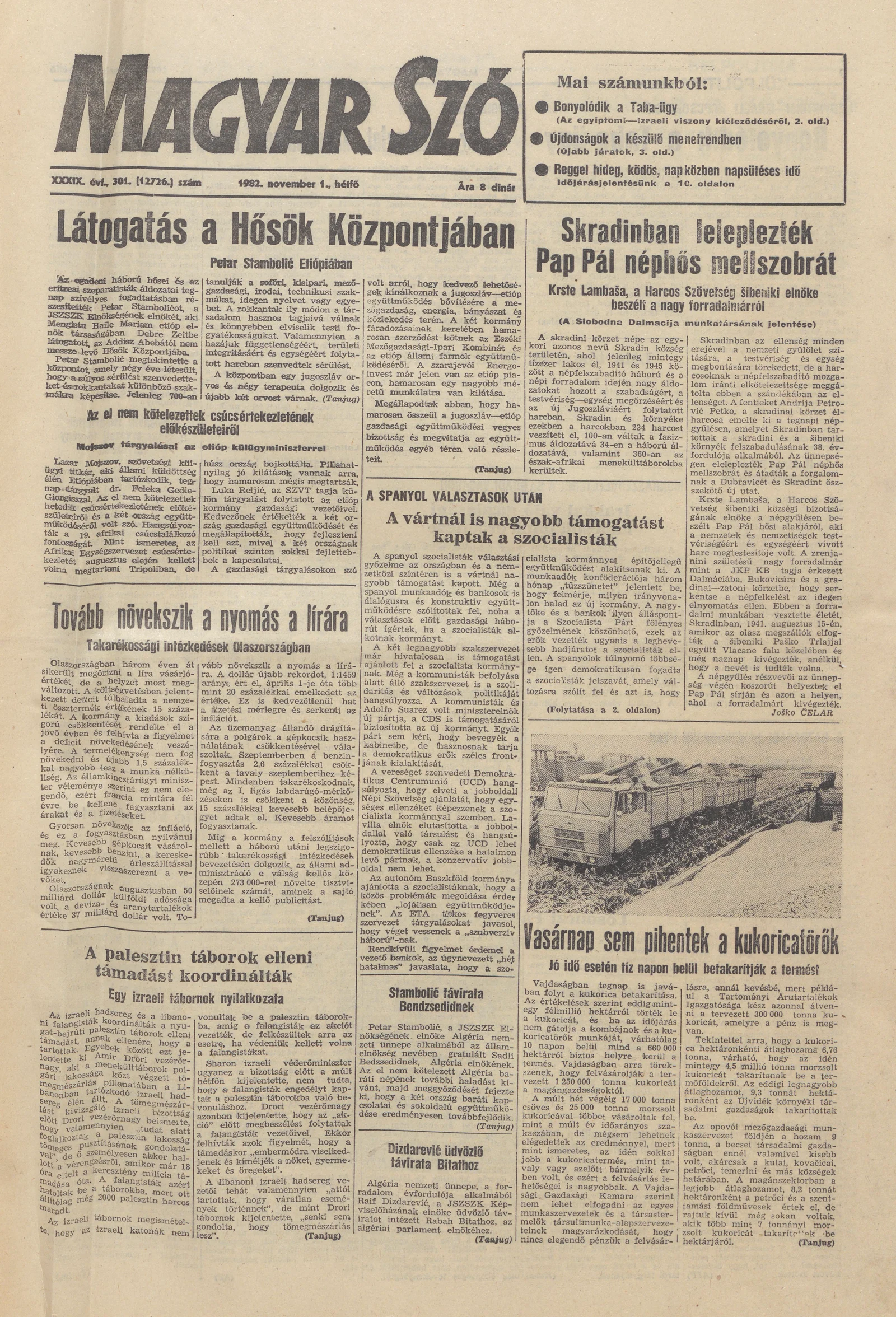 Magyar Szó, 39. évf. 1982. november 1. 301. sz. 1–10. oldal