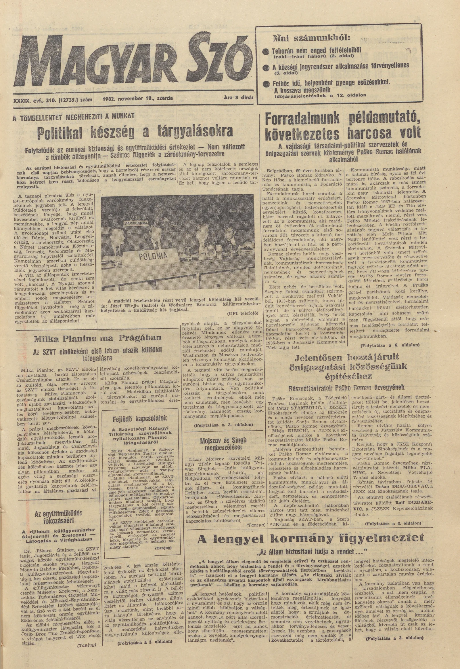 Magyar Szó, 39. évf. 1982. november 10. 310. sz. 1–24. oldal