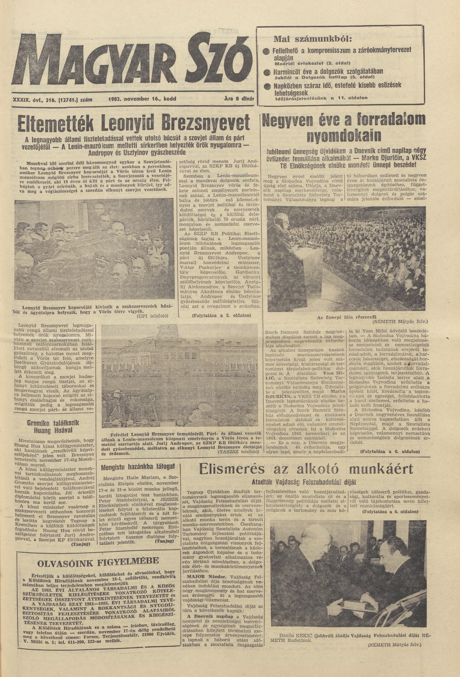 Magyar Szó, 39. évf. 1982. november 16. 316. sz. 1–20. oldal