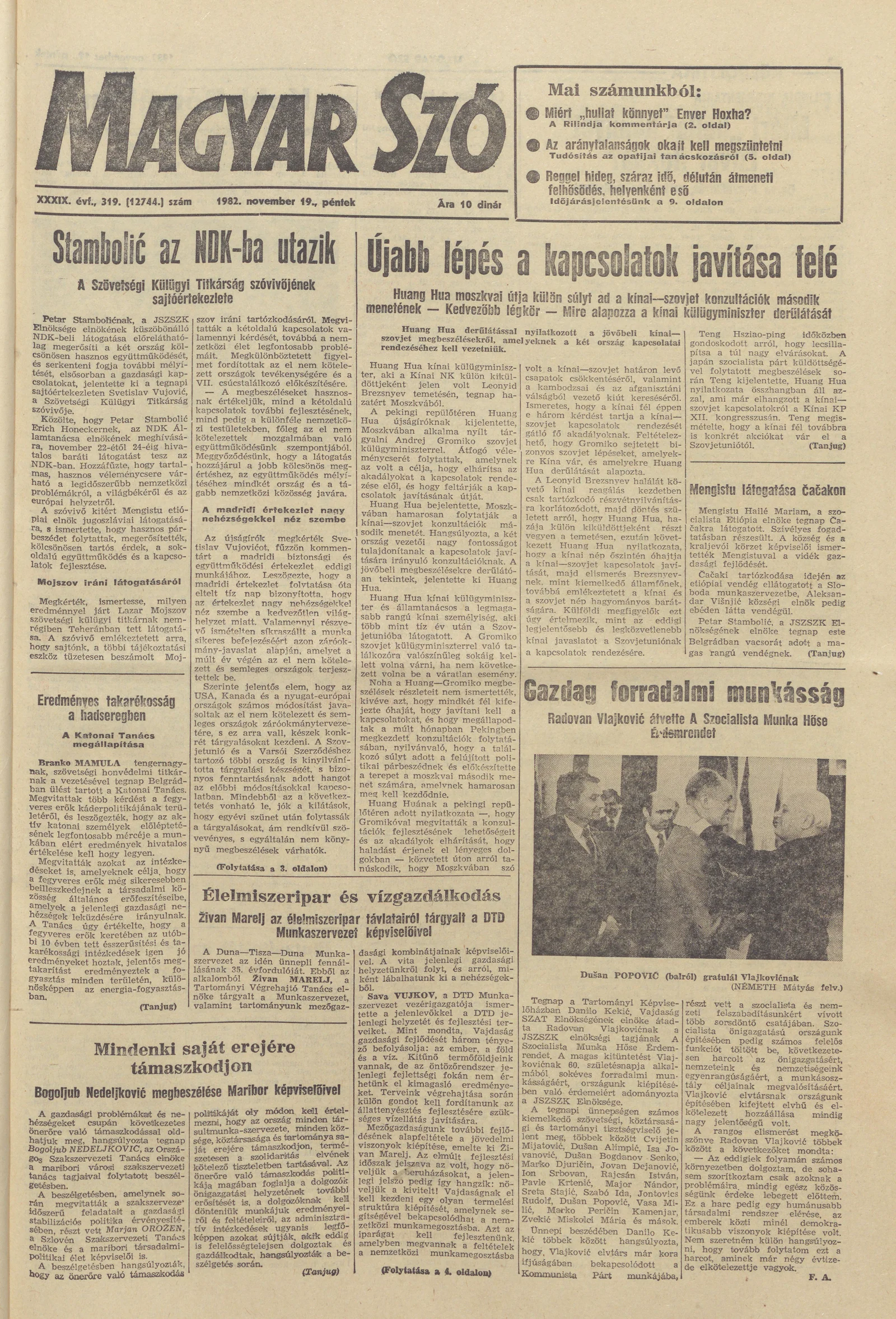 Magyar Szó, 39. évf. 1982. november 19. 319. sz. 1–20. oldal