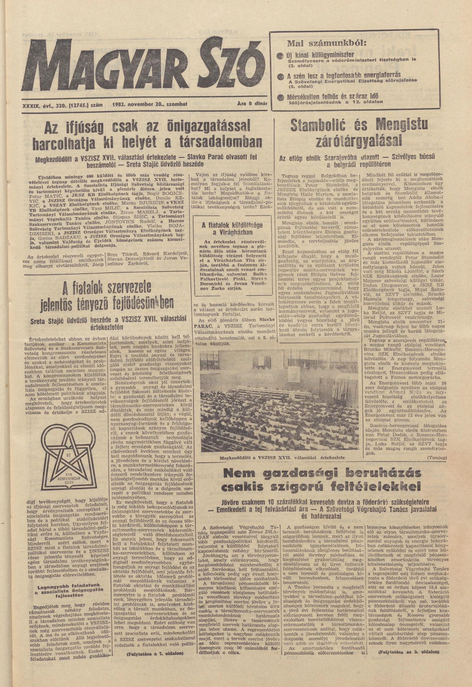 Magyar Szó, 39. évf. 1982. november 20. 320. sz. 1–24. oldal