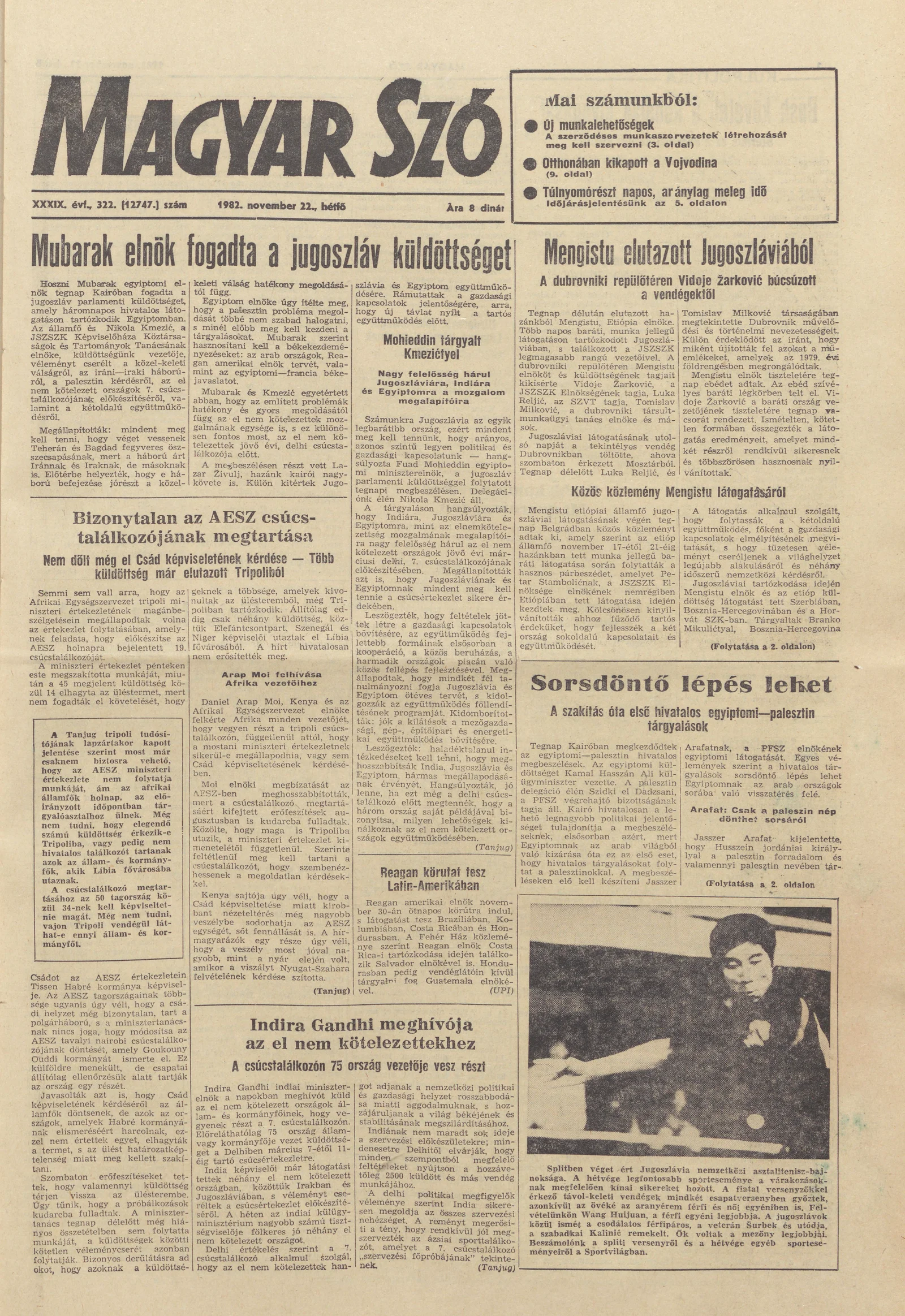 Magyar Szó, 39. évf. 1982. november 22. 322. sz. 1–8. oldal