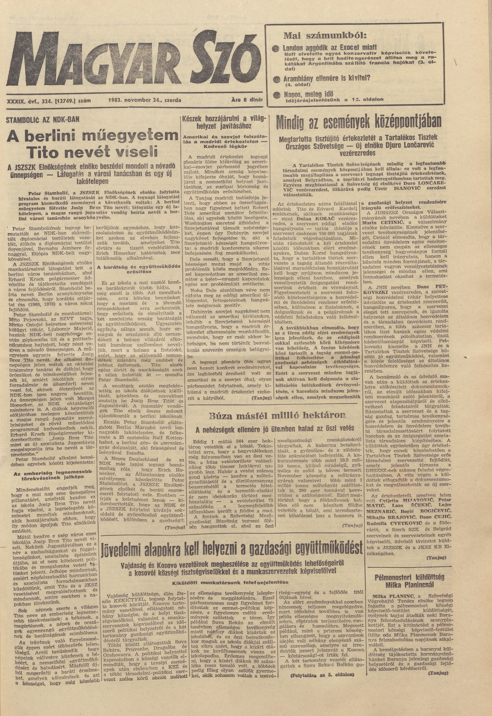 Magyar Szó, 39. évf. 1982. november 24. 324. sz. 1–24. oldal