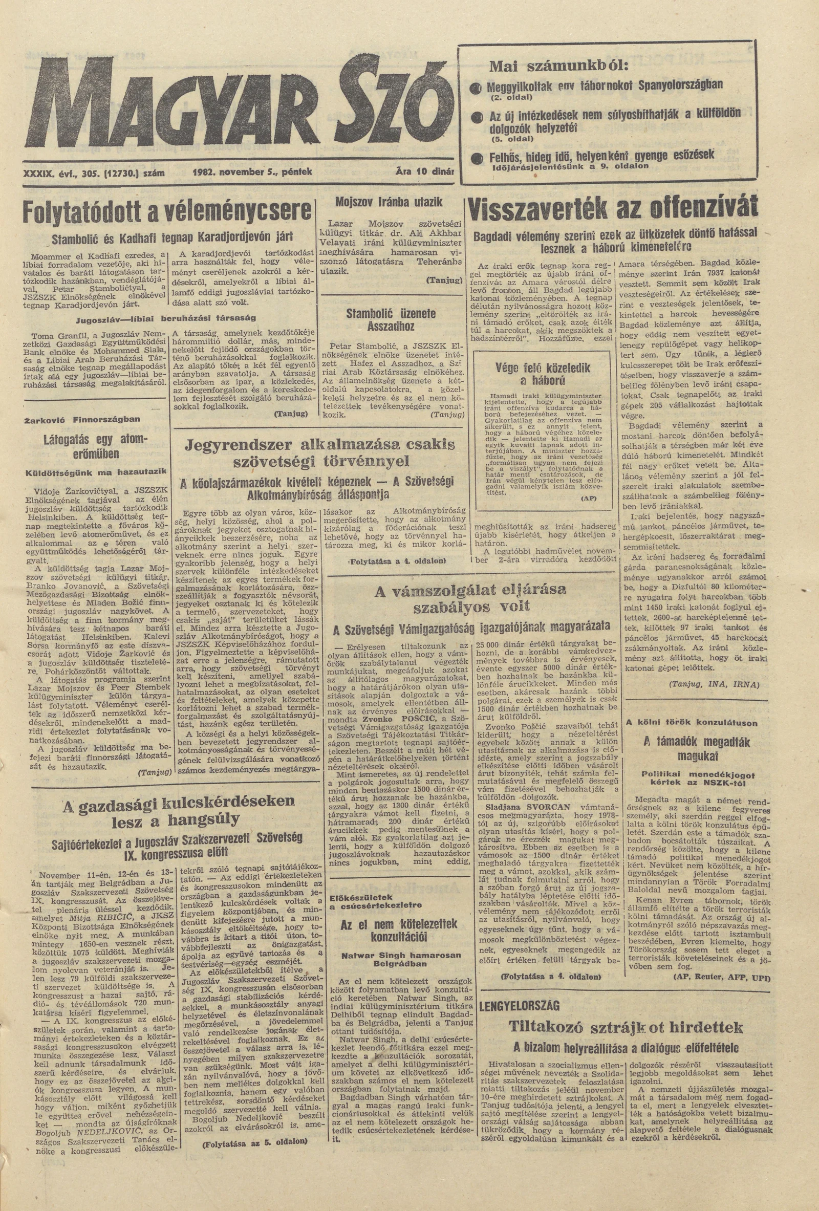 Magyar Szó, 39. évf. 1982. november 5. 305. sz. 1–20. oldal