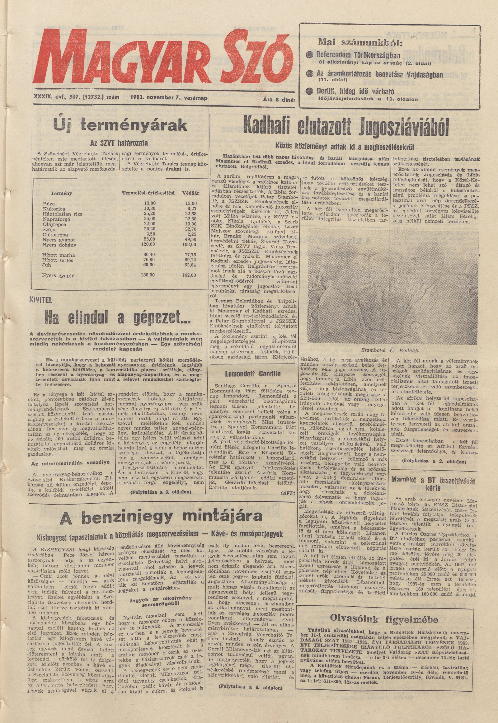 Magyar Szó, 39. évf. 1982. november 7. 307. sz. 1–28. oldal
