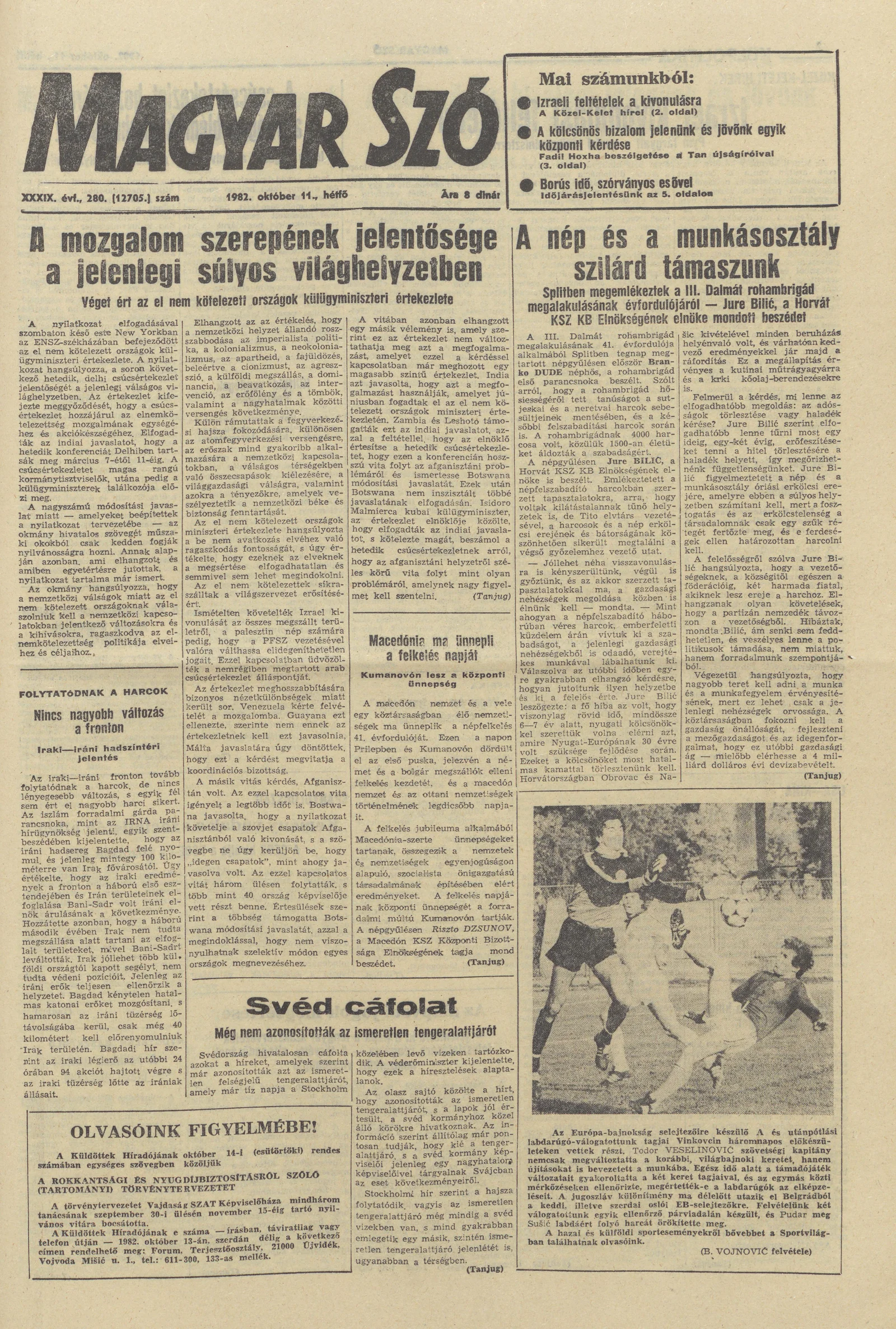 Magyar Szó, 39. évf. 1982. október 11. 280. sz. 1–8. oldal