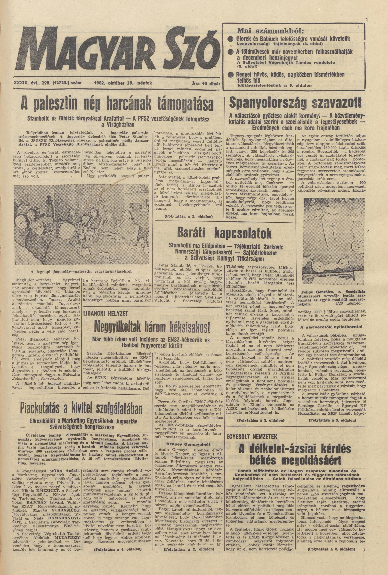 Magyar Szó, 39. évf. 1982. október 29. 298. sz. 1–20. oldal