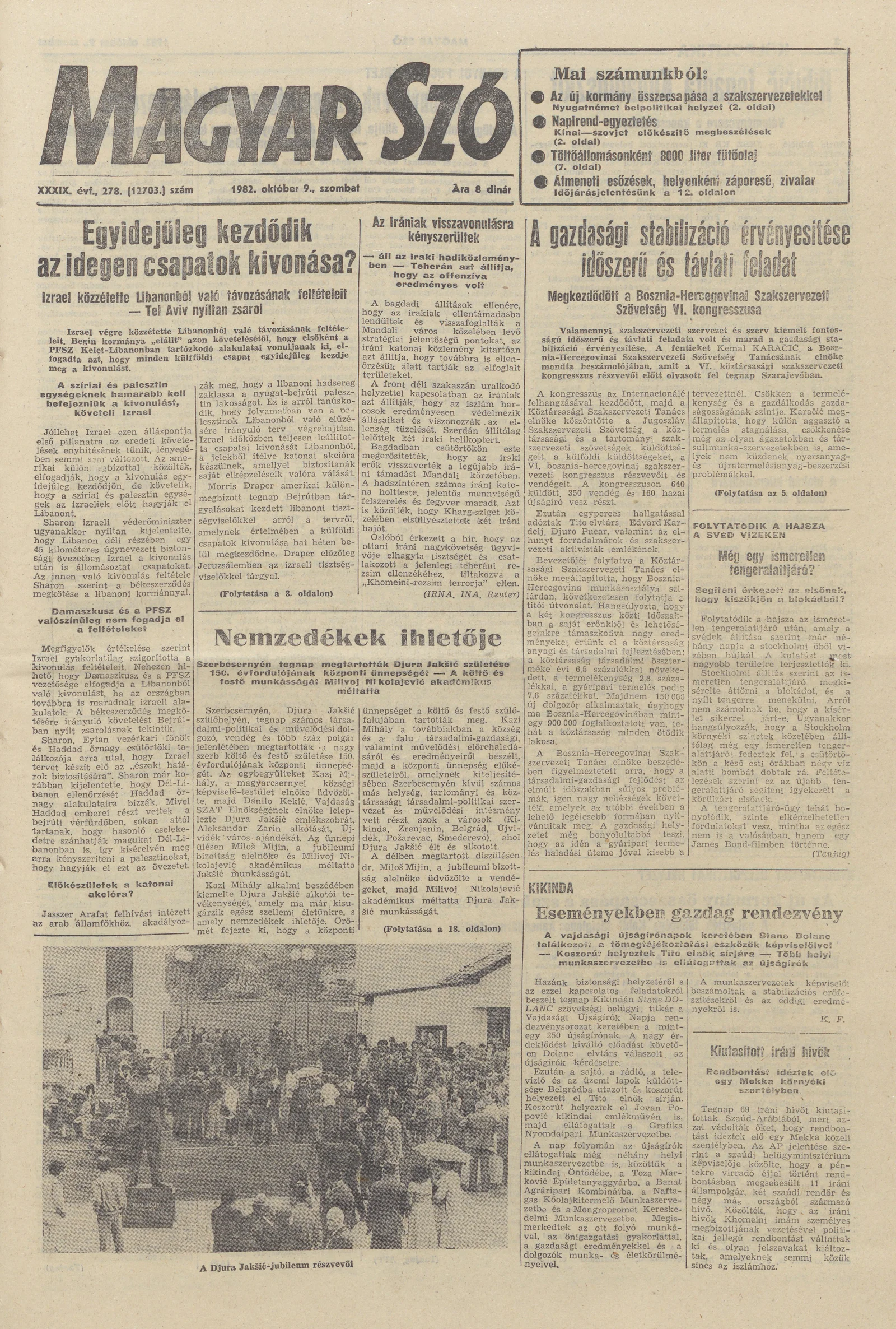 Magyar Szó, 39. évf. 1982. október 9. 278. sz. 1–24. oldal