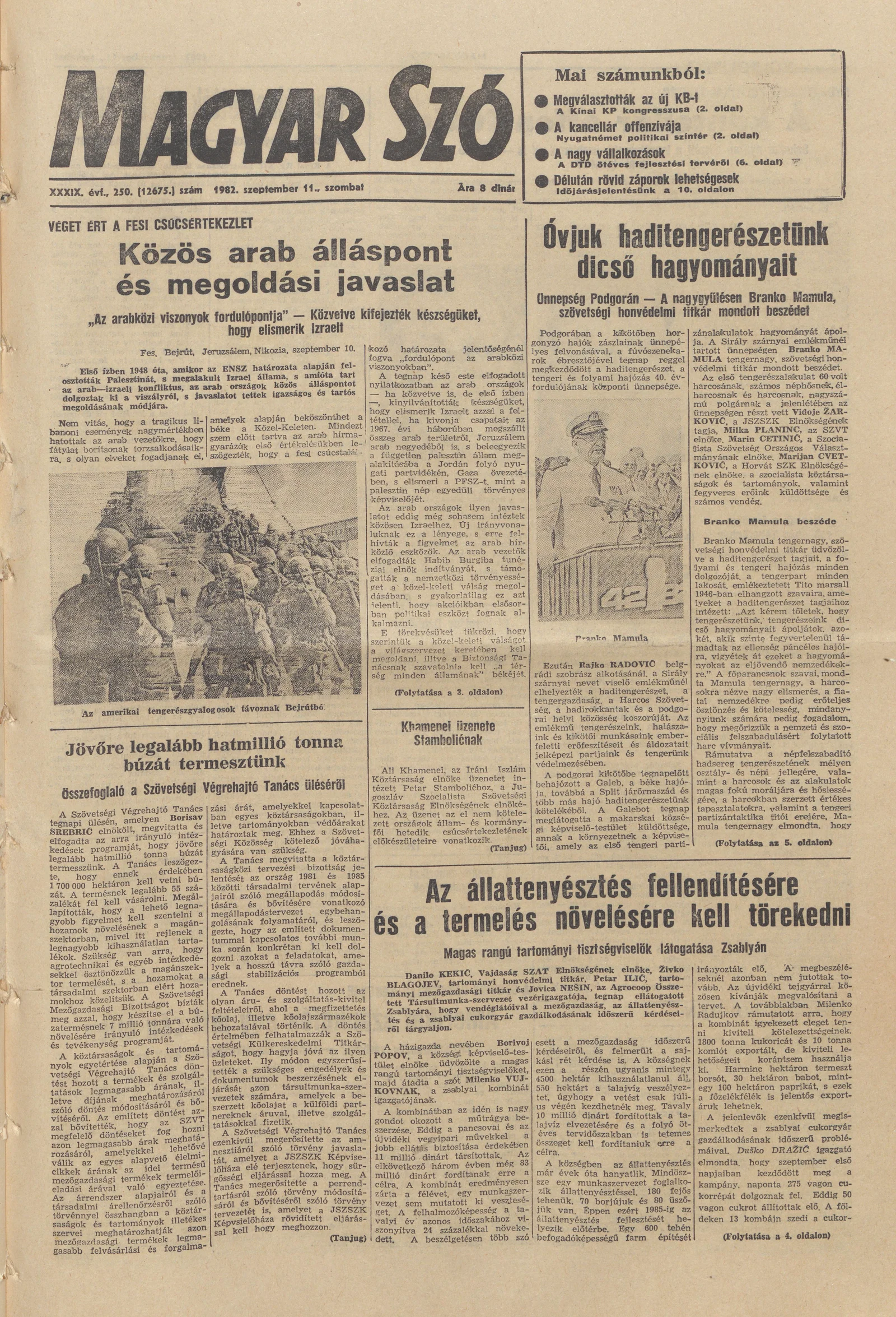 Magyar Szó, 39. évf. 1982. szeptember 11. 250. sz. 1–20. oldal