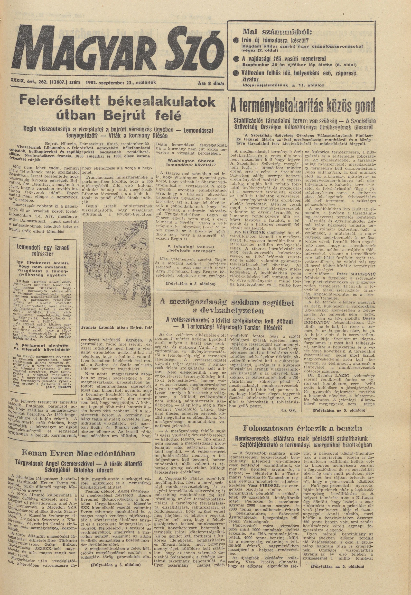 Magyar Szó, 39. évf. 1982. szeptember 23. 262. sz. 1–24. oldal