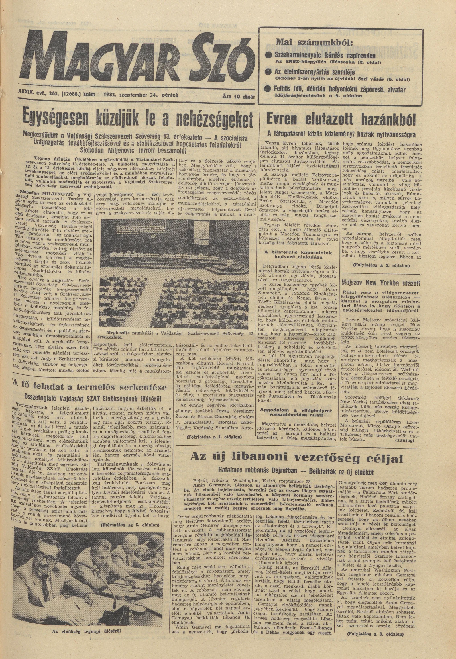 Magyar Szó, 39. évf. 1982. szeptember 24. 263. sz. 1–20. oldal
