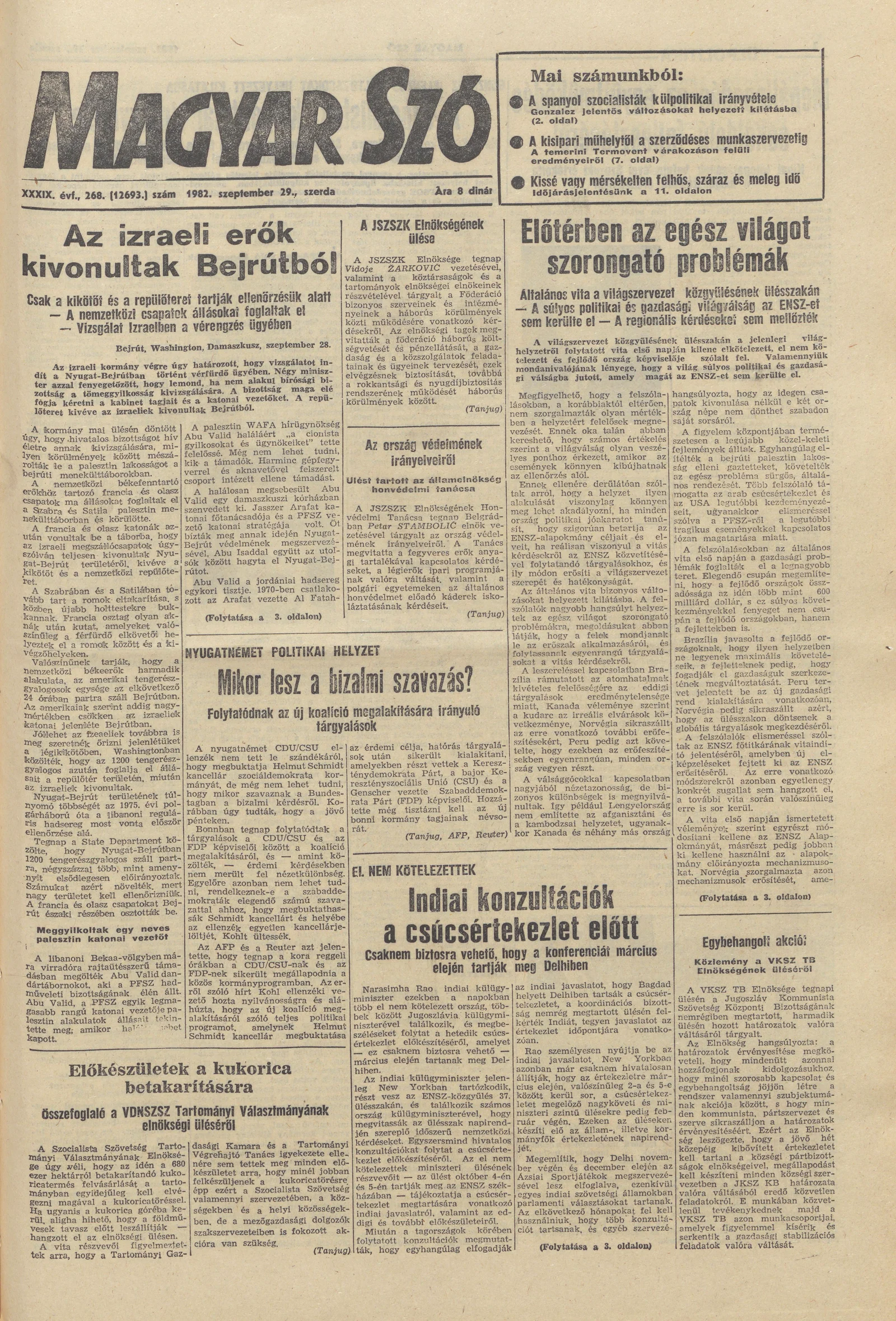Magyar Szó, 39. évf. 1982. szeptember 29. 268. sz. 1–20. oldal